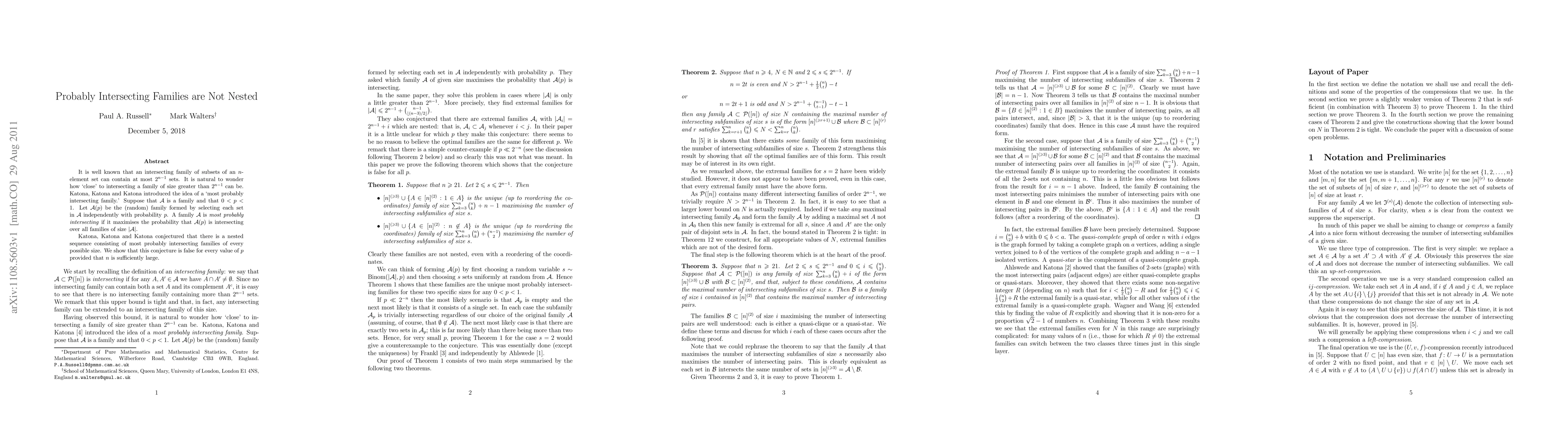 A study found that for sufficiently large n, a conjecture about most probably intersecting families is false, contradicting the idea of nested sequences.