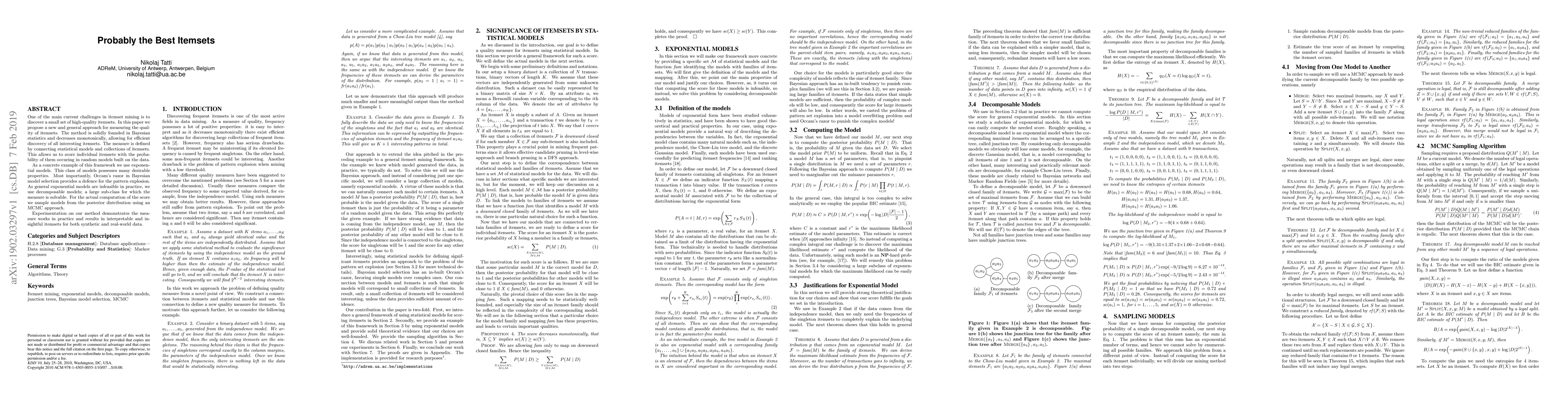 The paper proposes a new approach for measuring the quality of itemsets using Bayesian statistics, specifically exponential models, which are decomposable for efficient computation. It introduces a scoring method that decreases monotonically, enabling the discovery of all interesting itemsets.