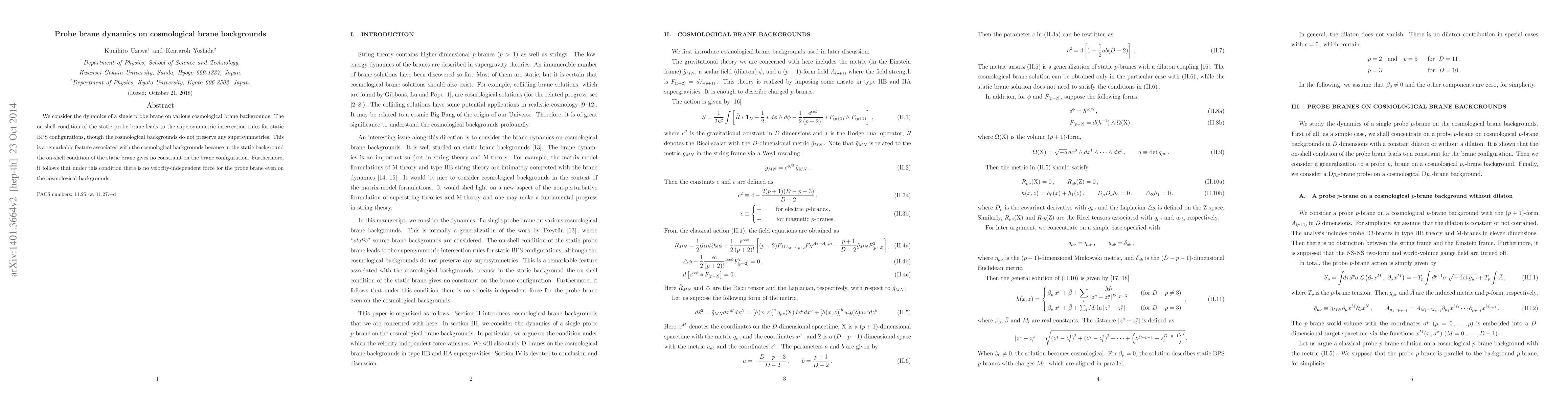 We consider the dynamics of a single probe brane on various cosmological brane backgrounds. The on-shell condition of the static probe brane leads to the supersymmetric intersection rules for static BPS configurations, though the cosmological backgrounds do not preserve any supersymmetries. This is a remarkable feature associated with the cosmological backgrounds because in the static background the on-shell condition of the static brane gives no constraint on the brane configuration. Furthermore, it follows that under this condition there is no velocity-independent force for the probe brane even on the cosmological backgrounds.
