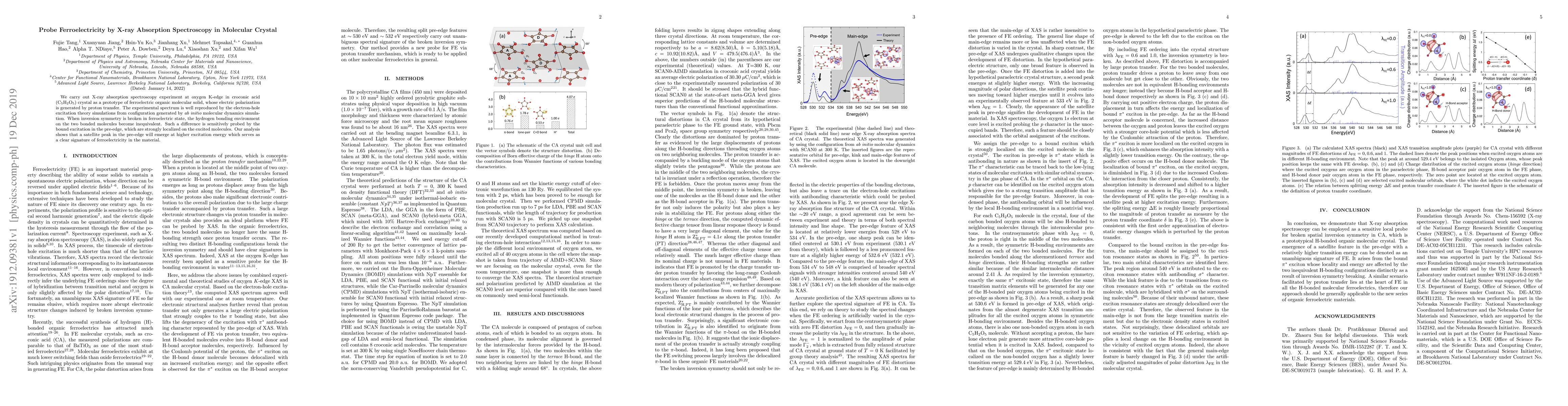 The research uses X-ray absorption spectroscopy at the oxygen K-edge in croconic acid crystals to probe ferroelectricity. The study finds that a satellite peak in the pre-edge, indicative of broken inversion symmetry and distinct hydrogen-bonding environments, serves as a clear signature of ferroelectricity in the material.