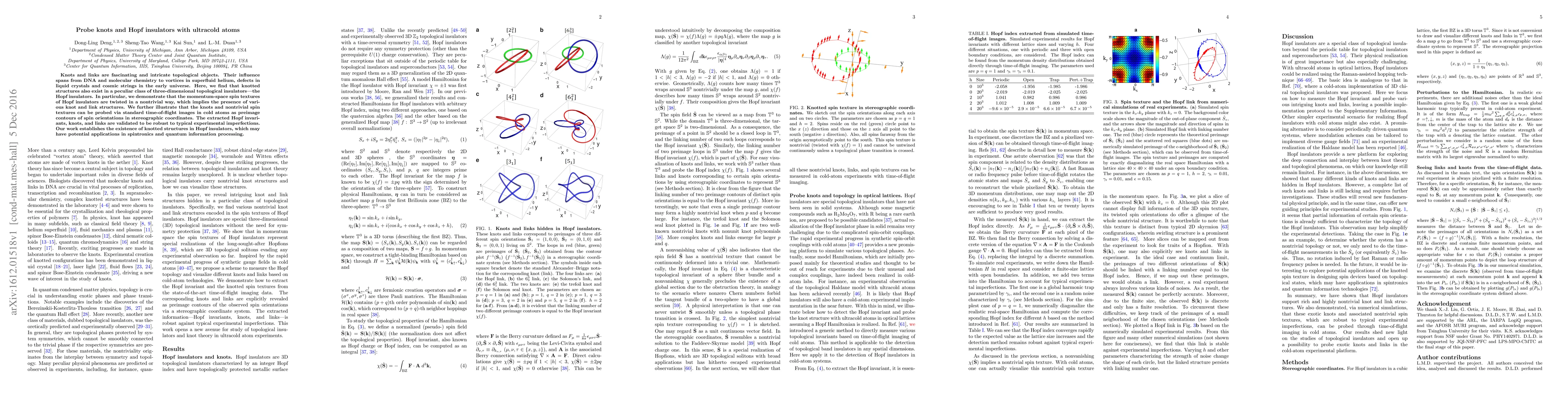 This paper explores the existence of knotted structures in Hopf insulators, demonstrating their nontrivial momentum-space spin textures. It shows that these knots and links can be probed using ultracold atoms, suggesting potential applications in spintronics and quantum information processing.