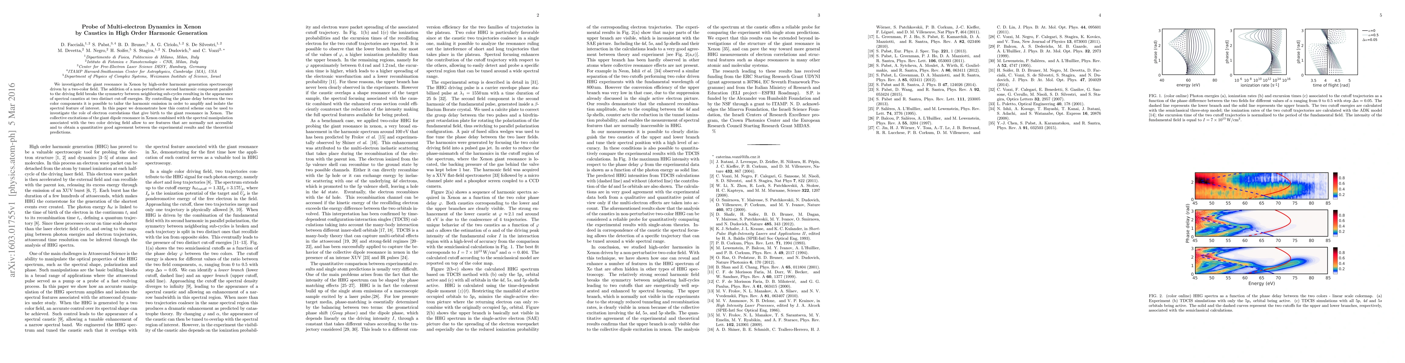 We investigated the giant resonance in Xenon by high-order harmonic generation spectroscopy driven by a two-color field. The addition of a non-perturbative second harmonic component parallel to the driving field breaks the symmetry between neighboring sub-cycles resulting in the appearance of spectral caustics at two distinct cut-off energies. By controlling the phase delay between the two color components it is possible to tailor the harmonic emission in order to amplify and isolate the spectral feature of interest. In this paper we demonstrate how this control scheme can be used to investigate the role of electron correlations that give birth to the giant resonance in Xenon. The collective excitations of the giant dipole resonance in Xenon combined with the spectral manipulation associated with the two color driving field allow to see features that are normally not accessible and to obtain a quantitative good agreement between the experimental results and the theoretical predictions.