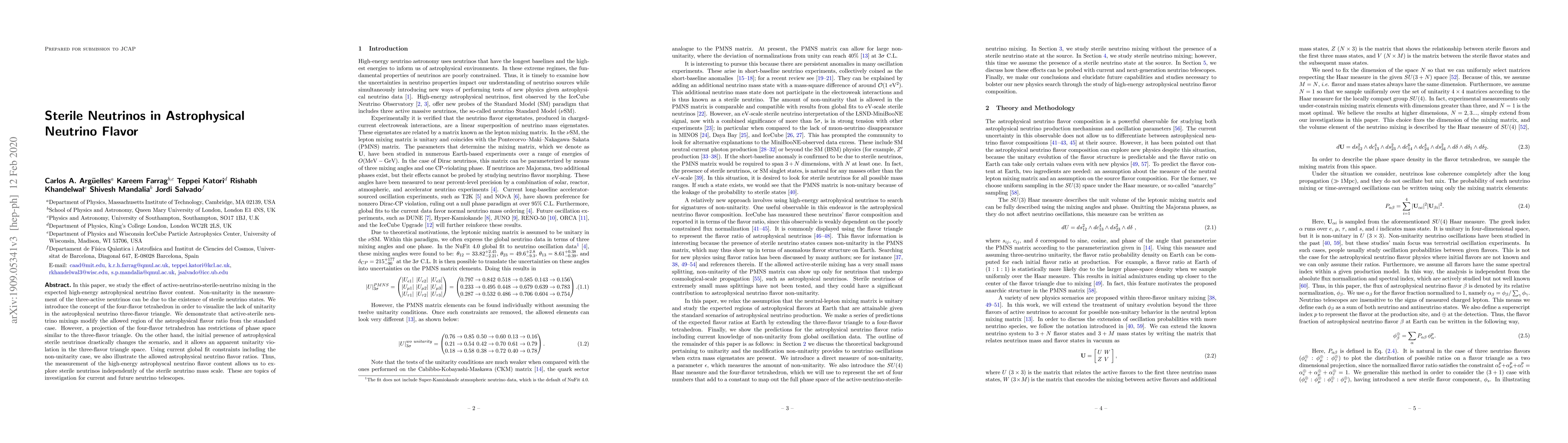 This paper investigates the impact of sterile neutrinos on the flavor content of high-energy astrophysical neutrinos, proposing a four-flavor tetrahedron model to visualize non-unitarity effects. It demonstrates that active-sterile neutrino mixing alters the standard astrophysical flavor ratio, suggesting that measurements of astrophysical neutrinos can independently probe sterile neutrinos regardless of their mass scale.