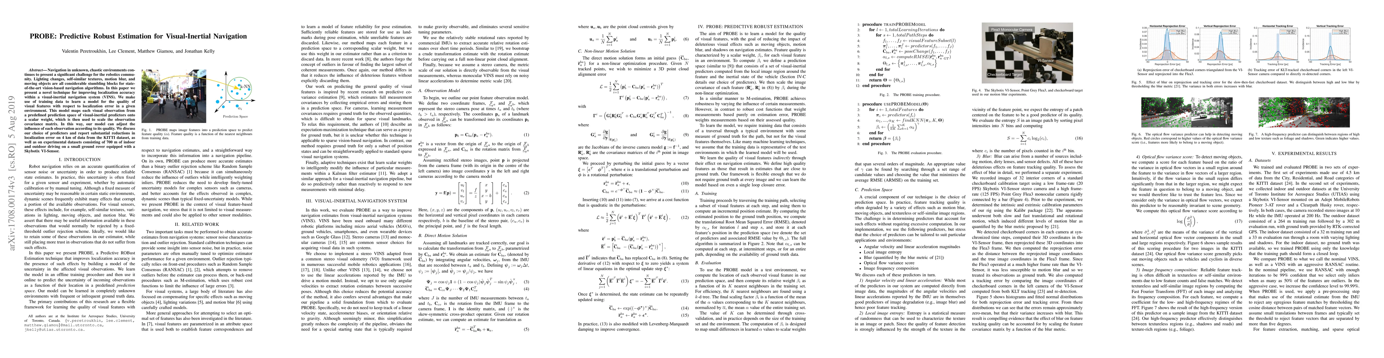This paper introduces PROBE, a predictive robust estimation technique for enhancing visual-inertial navigation system (VINS) accuracy in chaotic environments. It leverages training data to model visual feature quality, adjusting observation weights to minimize localization error, achieving significant reductions in error across various datasets.