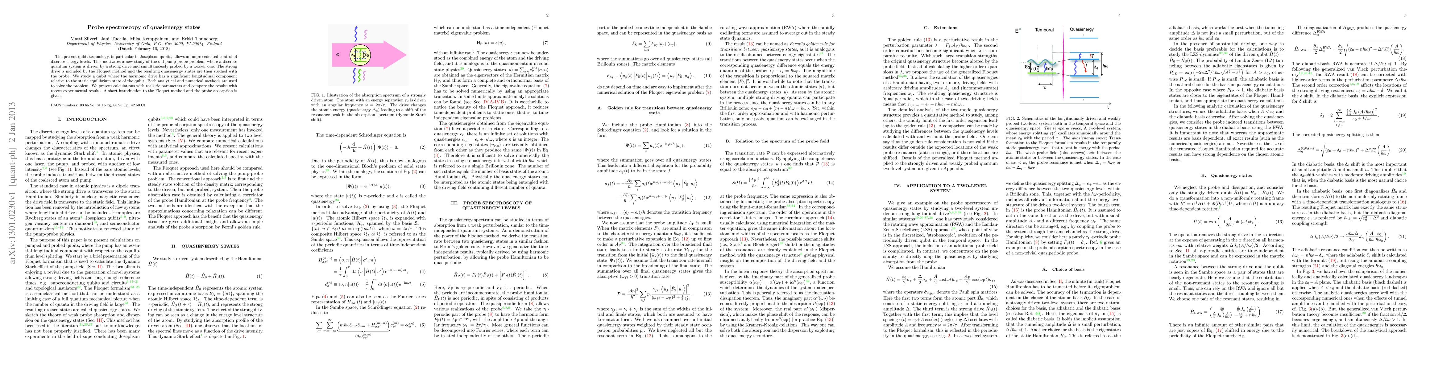 The present qubit technology, in particular in Josephson qubits, allows an unprecedented control of discrete energy levels. This motivates a new study of the old pump-probe problem, where a discrete quantum system is driven by a strong drive and simultaneously probed by a weaker one. The strong drive is included by the Floquet method and the resulting quasienergy states are then studied with the probe. We study a qubit where the harmonic drive has a significant longitudinal component relative to the static equilibrium state of the qubit. Both analytical and numerical methods are used to solve the problem. We present calculations with realistic parameters and compare the results with recent experimental results. A short introduction to the Floquet method and the probe absorption is given.