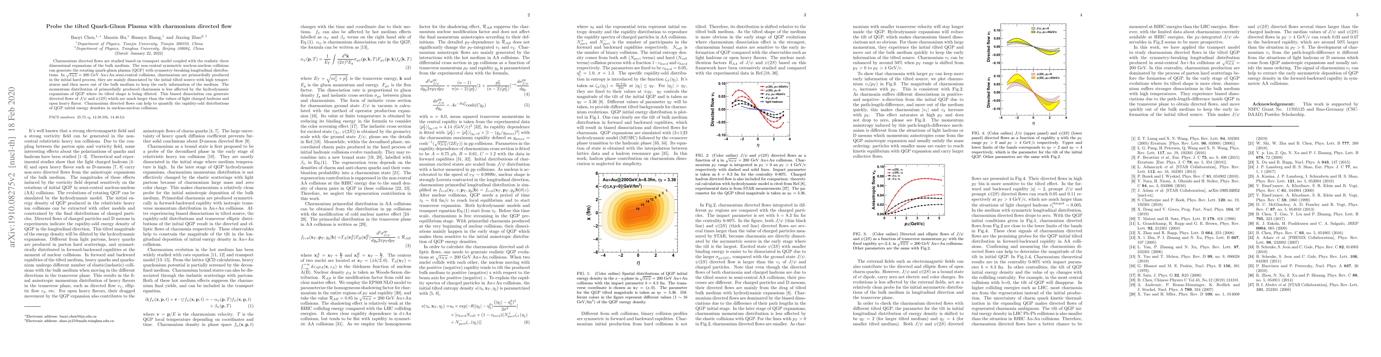 Charmonium directed flows are studied based on transport model coupled with the realistic three dimensional expansions of the bulk medium. The non-central symmetric nucleus-nucleus collisions can generate the rotating quark-gluon plasma (QGP) with symmetry-breaking longitudinal distributions. In $\sqrt{s_{NN}}=200$ GeV Au-Au semi-central collisions, charmonium are primordially produced in the initial hard process, they are mainly dissociated by the initial tilted source with high temperatures and then move out of the bulk medium to keep the early information of the medium. Charmonia are less affected by the hydrodynamic expansions of QGP where its tilted shape is being diluted. This biased dissociation can generate directed flows of $J/\psi$ and $\psi(2S)$ which are much larger than the values of light charged hadrons and open heavy flavor. They are sensitive and clean to the effect of QGP rapidity-odd initial energy densities.