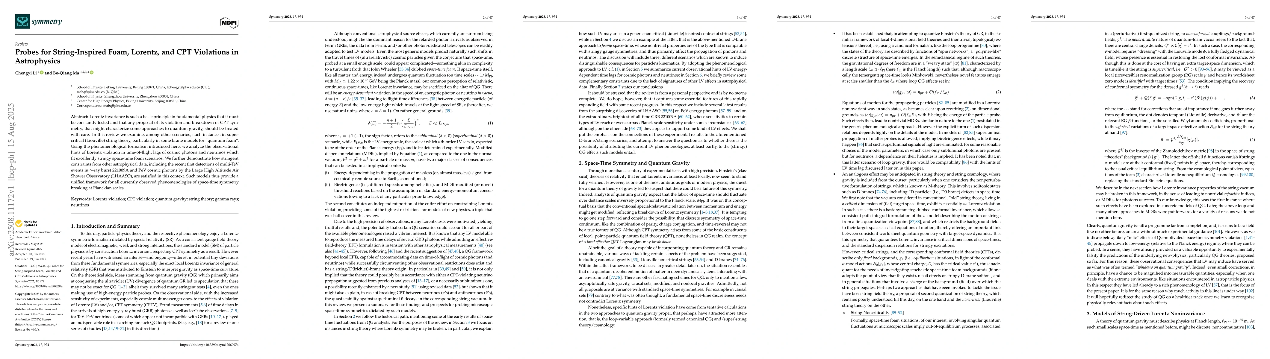 Lorentz invariance is such a basic principle in fundamental physics that it must be constantly tested and that any proposal of its violation and breakdown of CPT symmetry, that might characterize some approaches to quantum gravity, should be treated with care. In this review we examine, among other scenarios, such instances in supercritical~(Liouville) string theory, particularly in some brane models for ``quantum foam''. Using the phenomenological formalism introduced here, we analyze the observational hints of Lorentz violation in time-of-flight lags of cosmic photons and neutrinos which fit excellently stringy space-time foam scenarios. We further demonstrate how stringent constraints from other astrophysical data, including the recent first detections of multi-TeV events in $\gamma$-ray burst 221009A and PeV cosmic photons by the Large High Altitude Air Shower Observatory~(LHAASO), are satisfied in this context. Such models thus provide a unified framework for all currently observed phenomenologies of space-time symmetry breaking at Planckian scales.