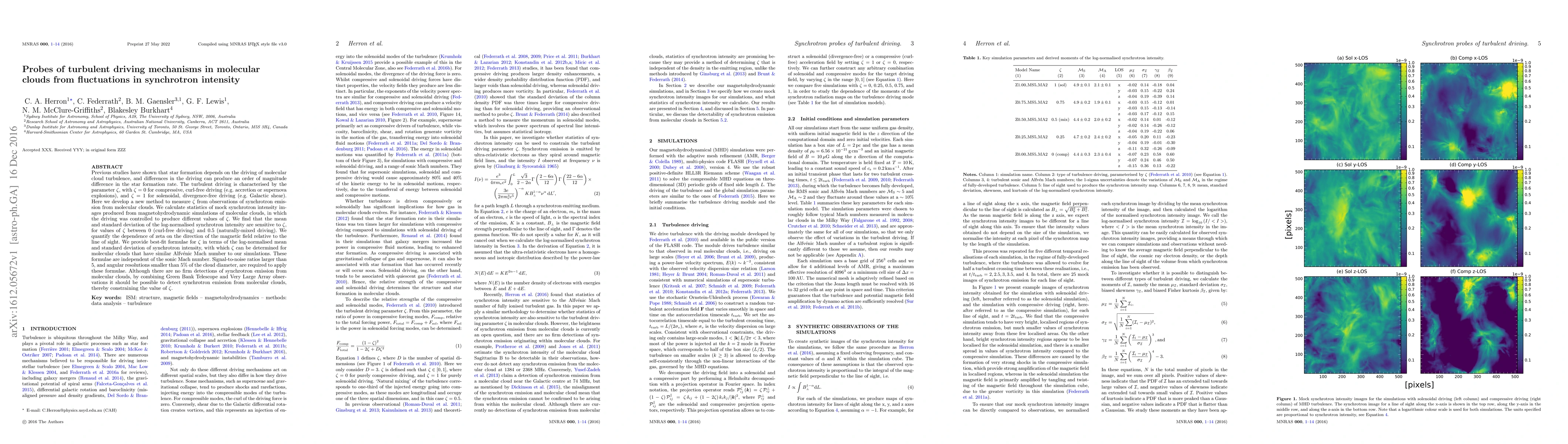 This paper develops a new method to measure the turbulent driving parameter $\zeta$ in molecular clouds using synchrotron emission observations. The study finds that the mean and standard deviation of log-normalised synchrotron intensity are sensitive to $\zeta$, providing best-fit formulae for its determination based on these statistics.