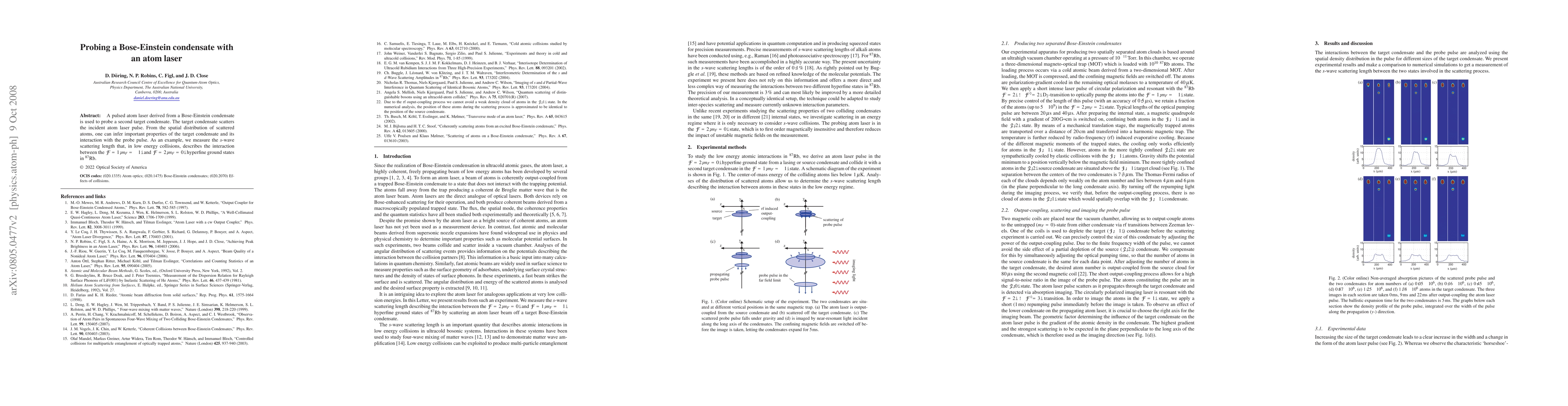 A pulsed atom laser derived from a Bose-Einstein condensate is used to probe a second target condensate. The target condensate scatters the incident atom laser pulse. From the spatial distribution of scattered atoms, one can infer important properties of the target condensate and its interaction with the probe pulse. As an example, we measure the s-wave scattering length that, in low energy collisions, describes the interaction between the |F=1,m_F=-1> and |F=2,m_F=0> hyperfine ground states in 87Rb.