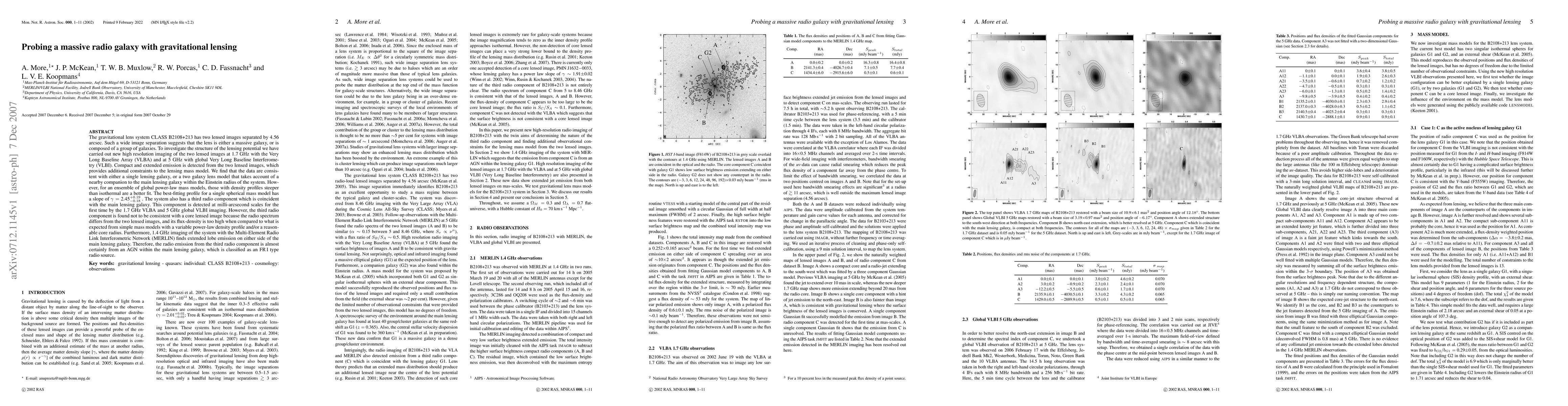 A massive radio galaxy, CLASS B2108+213, is probed with gravitational lensing, revealing a single lensing galaxy or a two-galaxy system with a nearby companion. The data suggest the presence of an AGN within the main lensing galaxy, classified as an FR I type radio source.