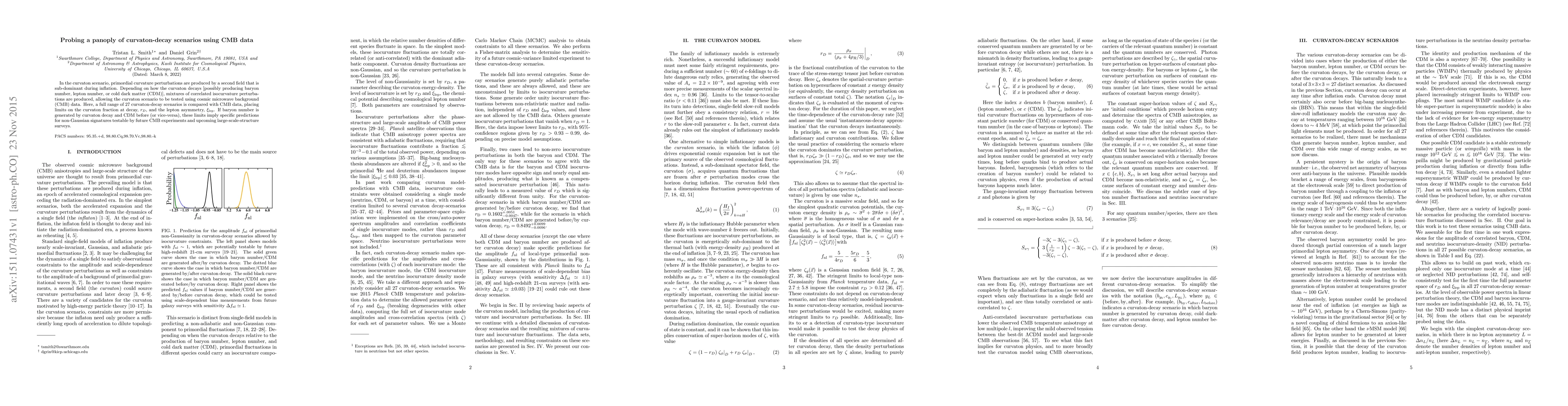 This research examines 27 curvaton-decay scenarios using cosmic microwave background (CMB) data to determine constraints on the curvaton fraction at decay ($r_D$) and the lepton asymmetry ($\xi_{\rm lep}$), with implications for baryon number generation and predictions for future CMB experiments and large-scale structure surveys.