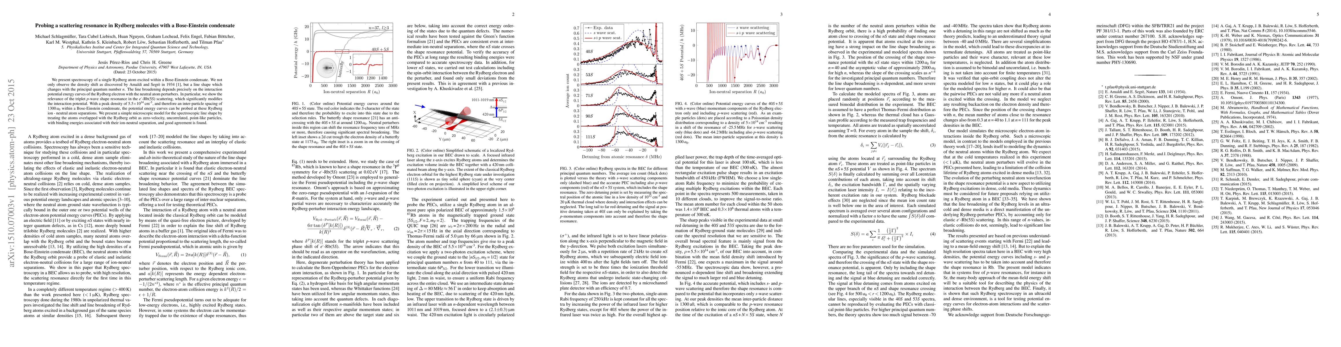 We present spectroscopy of a single Rydberg atom excited within a Bose-Einstein condensate. We not only observe the density shift as discovered by Amaldi and Segre in 1934, but a line shape which changes with the principal quantum number n. The line broadening depends precisely on the interaction potential energy curves of the Rydberg electron with the neutral atom perturbers. In particular, we show the relevance of the triplet p-wave shape resonance in the Rydberg electron-Rb(5S) scattering, which significantly modifies the interaction potential. With a peak density of 5.5x10^14 cm^-3, and therefore an inter-particle spacing of 1300 a0 within a Bose-Einstein condensate, the potential energy curves can be probed at these Rydberg ion - neutral atom separations. We present a simple microscopic model for the spectroscopic line shape by treating the atoms overlapped with the Rydberg orbit as zero-velocity, uncorrelated, point-like particles, with binding energies associated with their ion-neutral separation, and good agreement is found.