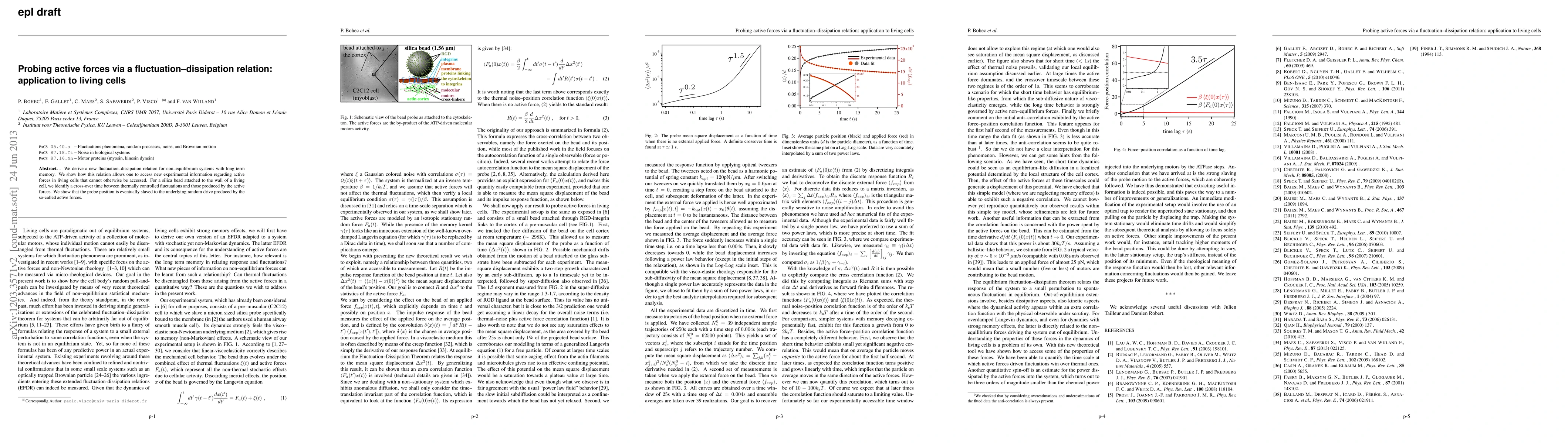 This paper develops a new fluctuation-dissipation relation for non-equilibrium systems with memory, enabling insights into active forces in living cells. It identifies a crossover time between thermal and active force-induced fluctuations in a silica bead attached to a cell wall, revealing how the probe's position is influenced by active forces.