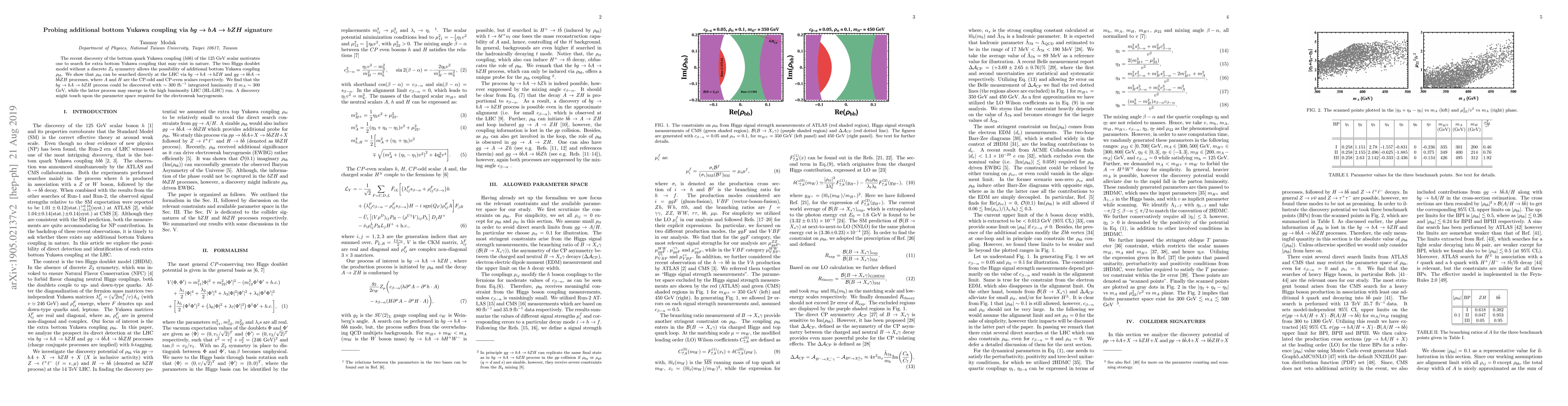 This paper investigates the potential for discovering additional bottom Yukawa coupling $\rho_{bb}$ in the two Higgs doublet model via the $bg\to b A \to b Z H$ process at the LHC, suggesting that $\sim300$ fb$^{-1}$ of integrated luminosity could reveal this coupling if the CP-odd scalar mass $m_A$ is around 300 GeV.