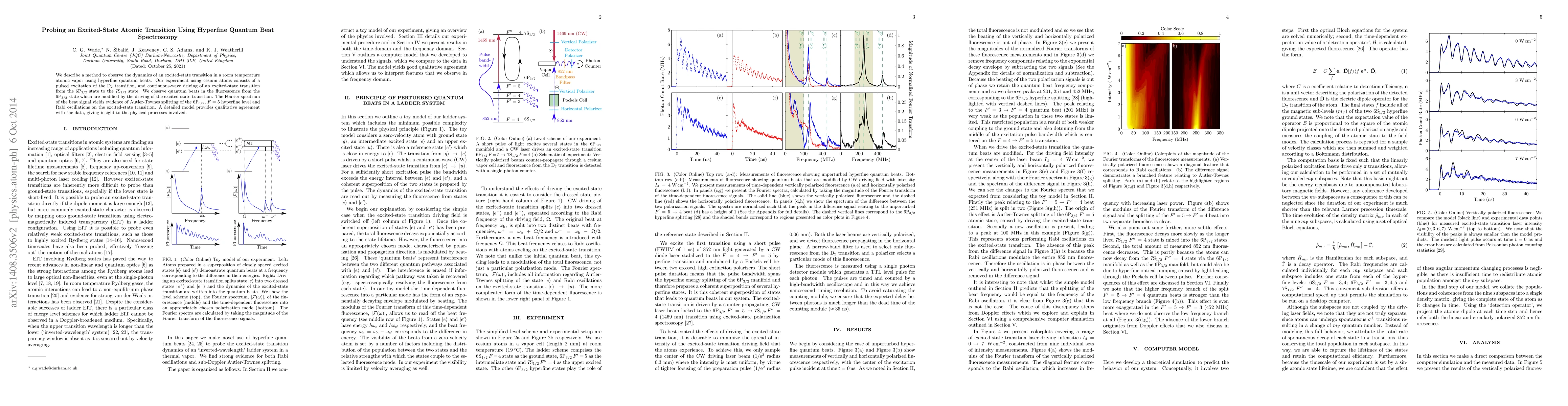 This paper presents a method to study excited-state atomic transitions in cesium vapor using hyperfine quantum beat spectroscopy, revealing dynamics through fluorescence quantum beats and observing Autler-Townes splitting and Rabi oscillations. The experimental results are well-explained by a detailed theoretical model.