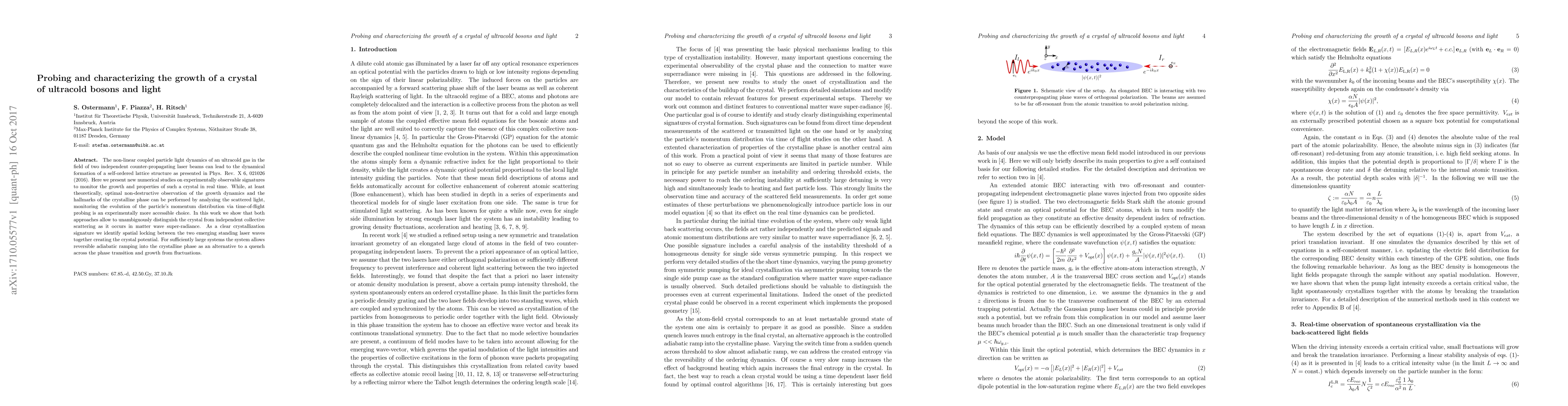 The non-linear coupled particle light dynamics of an ultracold gas in the field of two independent counter-propagating laser beams can lead to the dynamical formation of a self-ordered lattice structure as presented in Phys. Rev. X 6, 021026 (2016). Here we present new numerical studies on experimentally observable signatures to monitor the growth and properties of such a crystal in real time. While, at least theoretically, optimal non-destructive observation of the growth dynamics and the hallmarks of the crystalline phase can be performed by analyzing the scattered light, monitoring the evolution of the particle's momentum distribution via time-of-flight probing is an experimentally more accessible choice. In this work we show that both approaches allow to unambiguously distinguish the crystal from independent collective scattering as it occurs in matter wave super-radiance. As a clear crystallization signature we identify spatial locking between the two emerging standing laser waves together creating the crystal potential. For sufficiently large systems the system allows reversible adiabatic ramping into the crystalline phase as an alternative to a quench across the phase transition and growth from fluctuations.