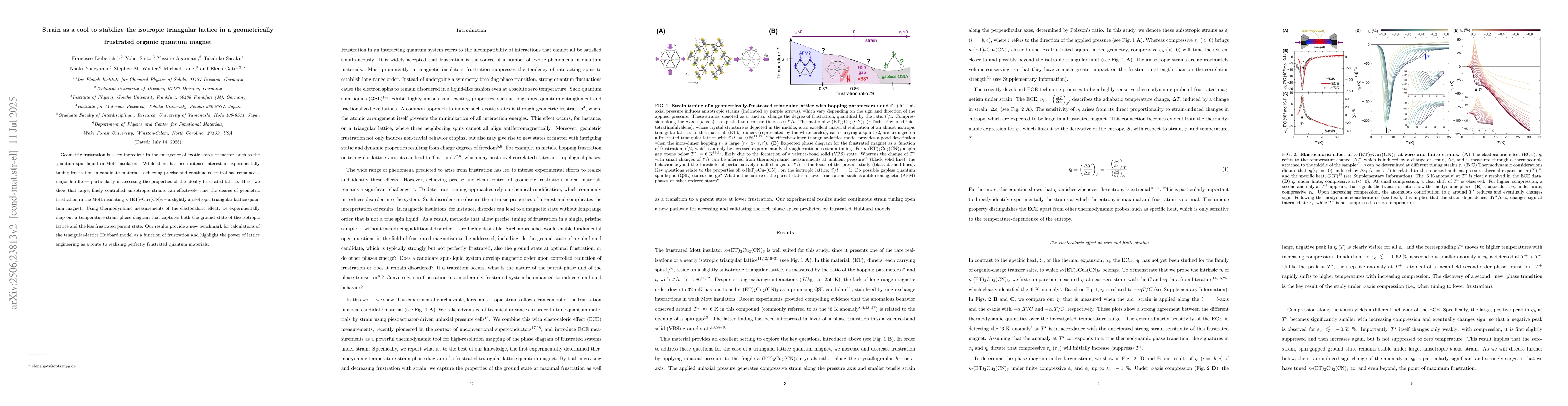 Geometric frustration is a key ingredient in the emergence of exotic states of matter, such as the quantum spin liquid in Mott insulators. While there has been intense interest in experimentally tuning frustration in candidate materials, achieving precise and continuous control has remained a major hurdle -- particularly in accessing the properties of the ideally frustrated lattice. Here, we show that large, finely controlled anisotropic strains can effectively tune the degree of geometric frustration in the Mott insulating $\kappa$-(ET)$_2$Cu$_2$(CN)$_3$ -- a slightly anisotropic triangular-lattice quantum magnet. Using thermodynamic measurements of the elastocaloric effect, we experimentally map out a temperature-strain phase diagram that captures both the ground state of the isotropic lattice and the less frustrated parent state. Our results provide a new benchmark for calculations of the triangular-lattice Hubbard model as a function of frustration and highlight the power of lattice engineering as a route to realizing perfectly frustrated quantum materials.