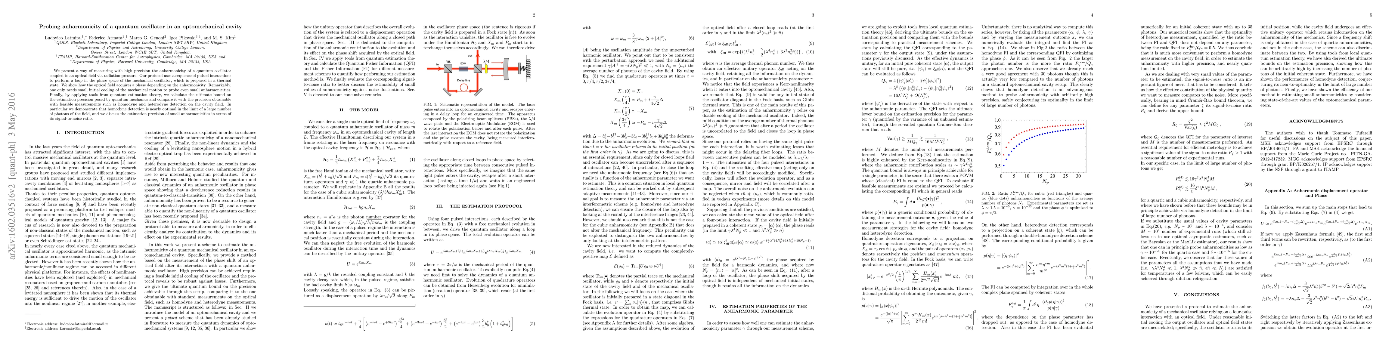 We present a way of measuring with high precision the anharmonicity of a quantum oscillator coupled to an optical field via radiation pressure. Our protocol uses a sequence of pulsed interactions to perform a loop in the phase space of the mechanical oscillator, which is prepared in a thermal state. We show how the optical field acquires a phase depending on the anharmonicity. Remarkably, one only needs small initial cooling of the mechanical motion to probe even small anharmonicities. Finally, by applying tools from quantum estimation theory, we calculate the ultimate bound on the estimation precision posed by quantum mechanics and compare it with the precision obtainable with feasible measurements such as homodyne and heterodyne detection on the cavity field. In particular we demonstrate that homodyne detection is nearly optimal in the limit of a large number of photons of the field and we discuss the estimation precision of small anharmonicities in terms of its signal-to-noise ratio.