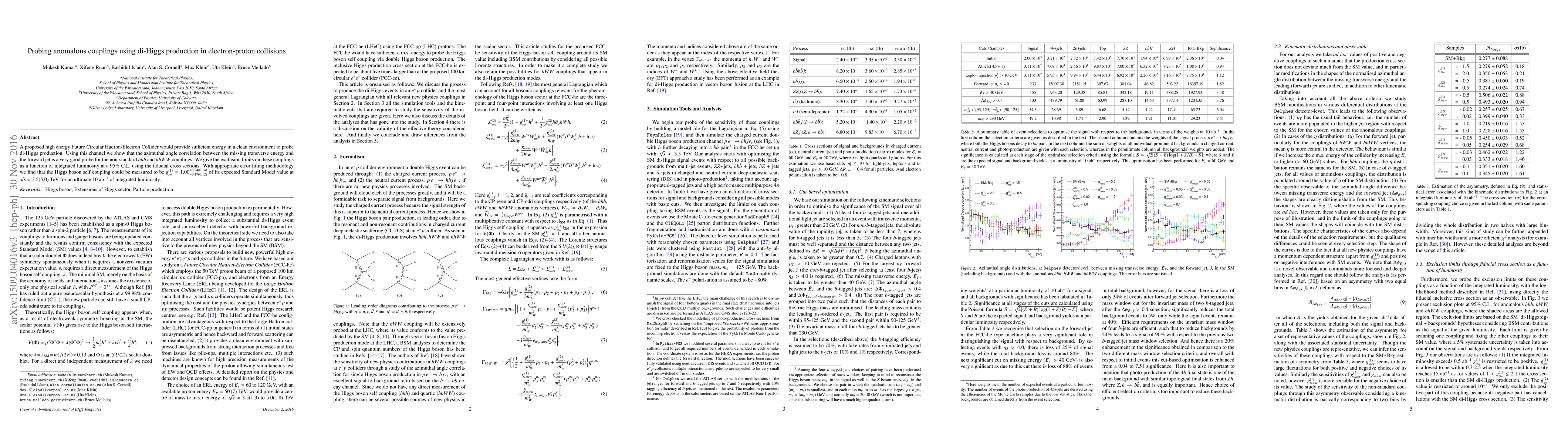 A proposed particle collider experiment can test new physics beyond the Standard Model using di-Higgs production in high-energy collisions, providing a unique probe for non-standard Higgs boson interactions.