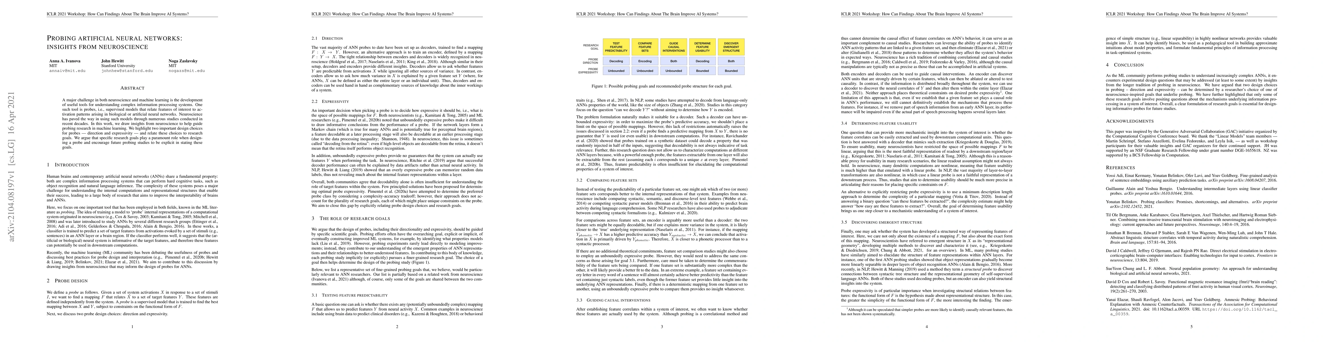 This paper explores the application of neuroscience-inspired probing techniques to enhance understanding of artificial neural networks. It emphasizes the importance of probe design choices, specifically direction and expressivity, in relation to specific research objectives, advocating for clarity in research goals when developing probes.