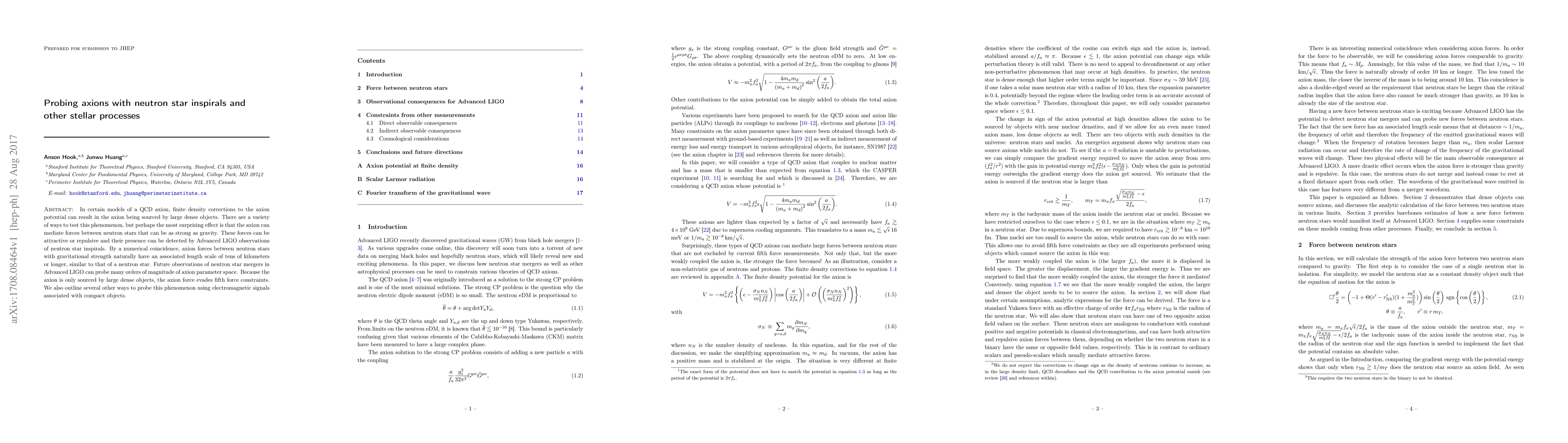 In certain models of a QCD axion, finite density corrections to the axion potential can result in the axion being sourced by large dense objects. There are a variety of ways to test this phenomenon, but perhaps the most surprising effect is that the axion can mediate forces between neutron stars that can be as strong as gravity. These forces can be attractive or repulsive and their presence can be detected by Advanced LIGO observations of neutron star inspirals. By a numerical coincidence, axion forces between neutron stars with gravitational strength naturally have an associated length scale of tens of kilometers or longer, similar to that of a neutron star. Future observations of neutron star mergers in Advanced LIGO can probe many orders of magnitude of axion parameter space. Because the axion is only sourced by large dense objects, the axion force evades fifth force constraints. We also outline several other ways to probe this phenomenon using electromagnetic signals associated with compact objects.