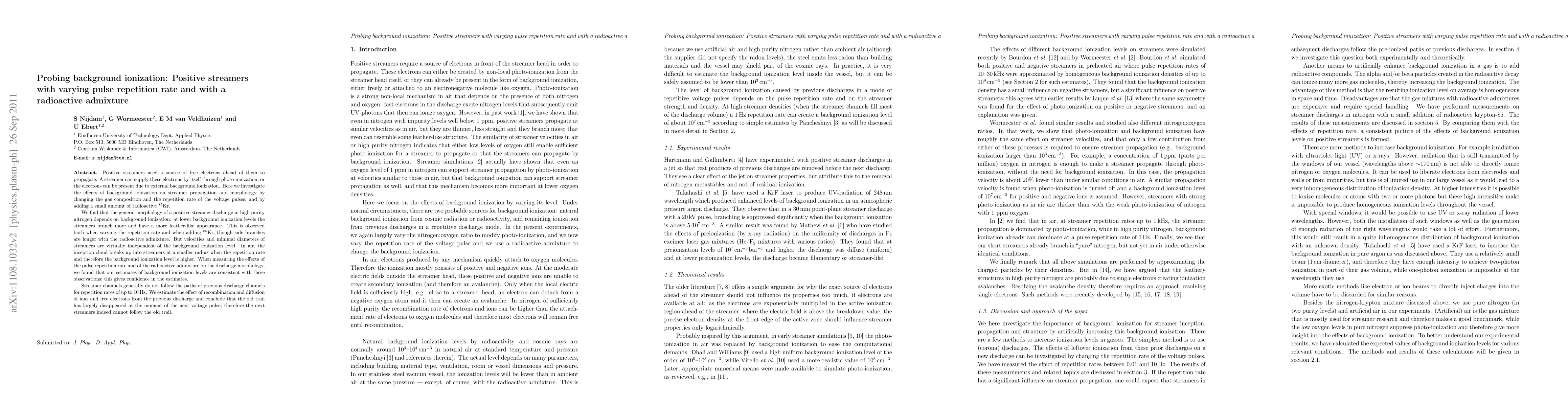Positive streamers need a source of free electrons ahead of them to propagate. A streamer can supply these electrons by itself through photo-ionization, or the electrons can be present due to external background ionization. Here we investigate the effects of background ionization on streamer propagation and morphology by changing the gas composition and the repetition rate of the voltage pulses, and by adding a small amount of radioactive Krypton 85. We find that the general morphology of a positive streamer discharge in high purity nitrogen depends on background ionization: at lower background ionization levels the streamers branch more and have a more feather-like appearance. This is observed both when varying the repetition rate and when adding Krypton 85, though side branches are longer with the radioactive admixture. But velocities and minimal diameters of streamers are virtually independent of the background ionization level. In air, the inception cloud breaks up into streamers at a smaller radius when the repetition rate and therefore the background ionization level is higher. When measuring the effects of the pulse repetition rate and of the radioactive admixture on the discharge morphology, we found that our estimates of background ionization levels are consistent with these observations; this gives confidence in the estimates. Streamer channels generally do not follow the paths of previous discharge channels for repetition rates of up to 10 Hz. We estimate the effect of recombination and diffusion of ions and free electrons from the previous discharge and conclude that the old trail has largely disappeared at the moment of the next voltage pulse; therefore the next streamers indeed cannot follow the old trail.