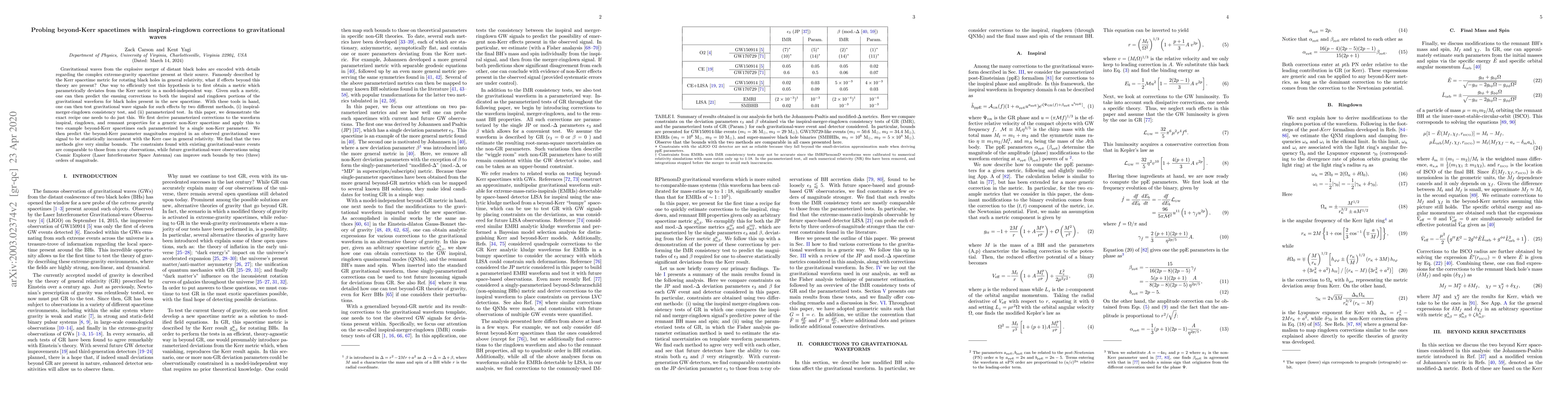 Gravitational waves from the explosive merger of distant black holes are encoded with details regarding the complex extreme-gravity spacetime present at their source. Famously described by the Kerr spacetime metric for rotating black holes in general relativity, what if effects beyond this theory are present? One way to efficiently test this hypothesis is to first obtain a metric which parametrically deviates from the Kerr metric in a model-independent way. Given such a metric, one can then predict the ensuing corrections to both the inspiral and ringdown portions of the gravitational waveform for black holes present in the new spacetime. With these tools in hand, one can then test gravitational wave signals for such effects by two different methods, (i) inspiral-merger-ringdown consistency test, and (ii) parameterized test. In this paper, we demonstrate the exact recipe one needs to do just this. We first derive parameterized corrections to the waveform inspiral, ringdown, and remnant properties for a generic non-Kerr spacetime and apply this to two example beyond-Kerr spacetimes each parameterized by a single non-Kerr parameter. We then predict the beyond-Kerr parameter magnitudes required in an observed gravitational wave signal to be statistically inconsistent with the Kerr case in general relativity. We find that the two methods give very similar bounds. The constraints found with existing gravitational-wave events are comparable to those from x-ray observations, while future gravitational-wave observations using Cosmic Explorer (Laser Interferometer Space Antenna) can improve such bounds by two (three) orders of magnitude.