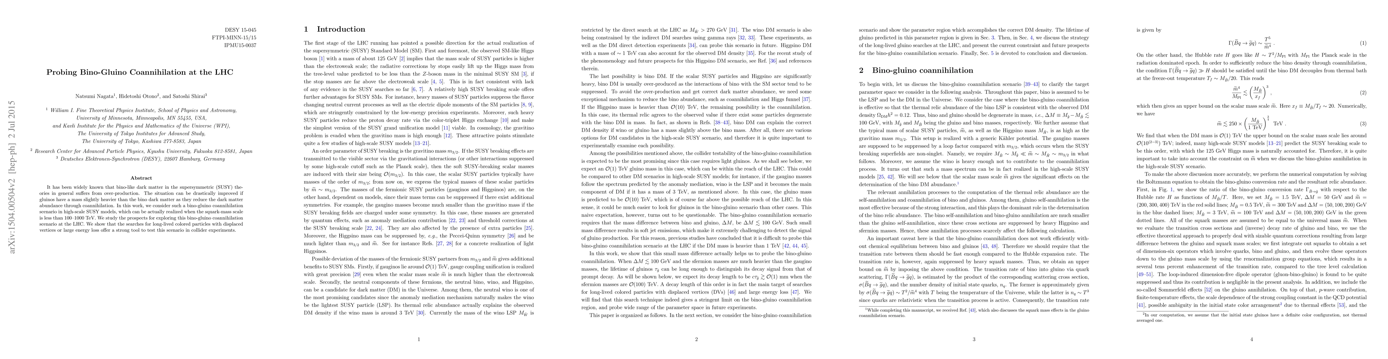 This paper investigates the bino-gluino coannihilation scenario in supersymmetric theories to address the over-production issue of bino-like dark matter. It explores the potential of the Large Hadron Collider (LHC) to detect this scenario through searches for long-lived colored particles with displaced vertices.