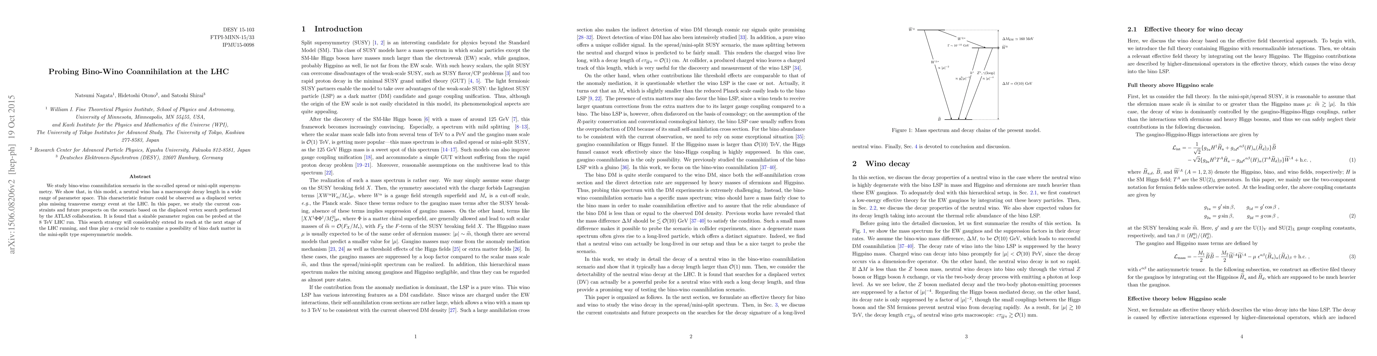 This paper explores the bino-wino coannihilation in mini-split supersymmetry, highlighting the potential for observing neutral wino decays with macroscopic lengths as displaced vertices and missing energy at the LHC. The study assesses current constraints and future prospects, indicating significant probing potential at the 8 TeV LHC and promising extended reach in future runs.