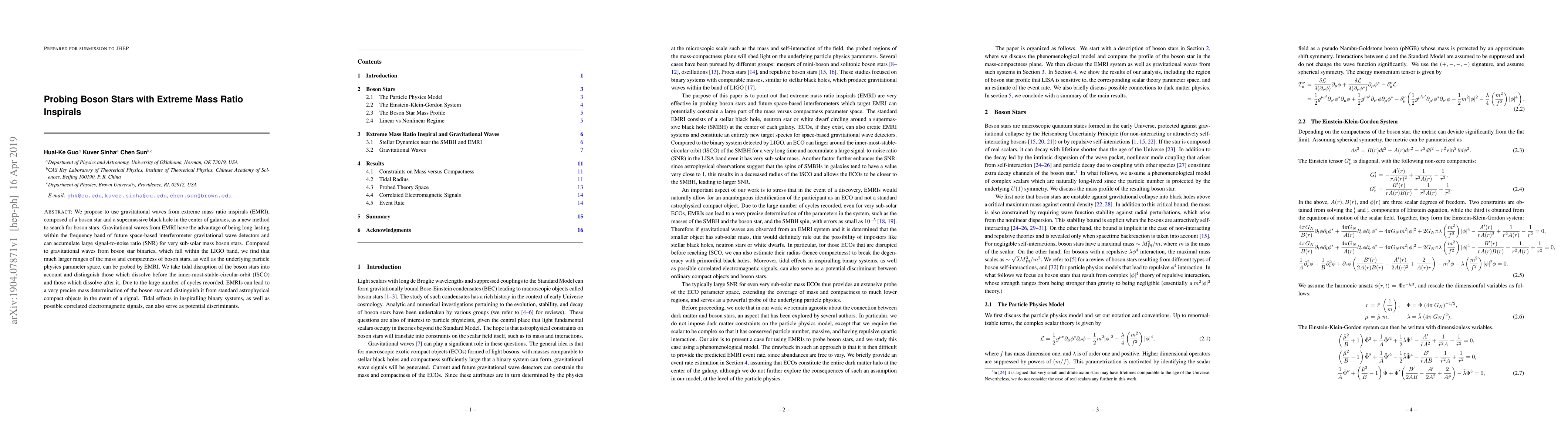 This paper explores using gravitational waves from extreme mass ratio inspirals (EMRI) to detect boson stars, leveraging their long-lasting signals for precise mass determination and probing broader mass and particle physics parameters compared to LIGO. It also considers tidal effects and potential electromagnetic signals for distinguishing boson stars from other compact objects.
