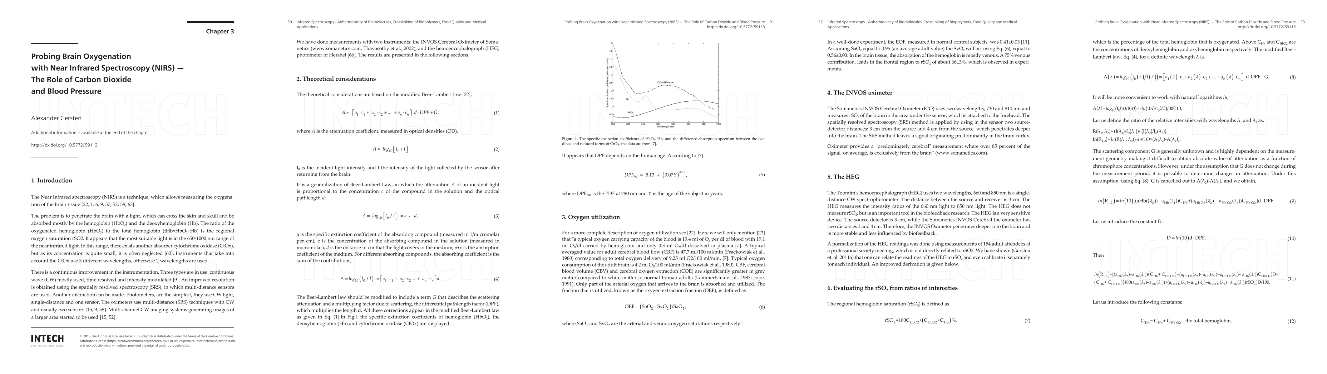 The fundamentals of near infrared spectroscopy (NIRS) are reviewed. Among the major factors controlling the cerebral blood flow (CBF), the effect of PaCO2 is peculiar in that it violates autoregulatory CBF mechanisms and allows to explore the full range of the CBF. A simple physical model, with a four parameter formula, relating the CBF to PaCO2 is presented. It can be used to transform the fits of one animal to the fits of another one. It enable the use of rats data as monkeys data simply by rescaling the PaCO2 values and the CBF data. Controlled breathing can change the PaCO2. Experiments on human subjects relating the PaCO2 to rSO2, measured with brain oximeters, are presented. A simple model relating the mean blood pressure to CBF is worked out.