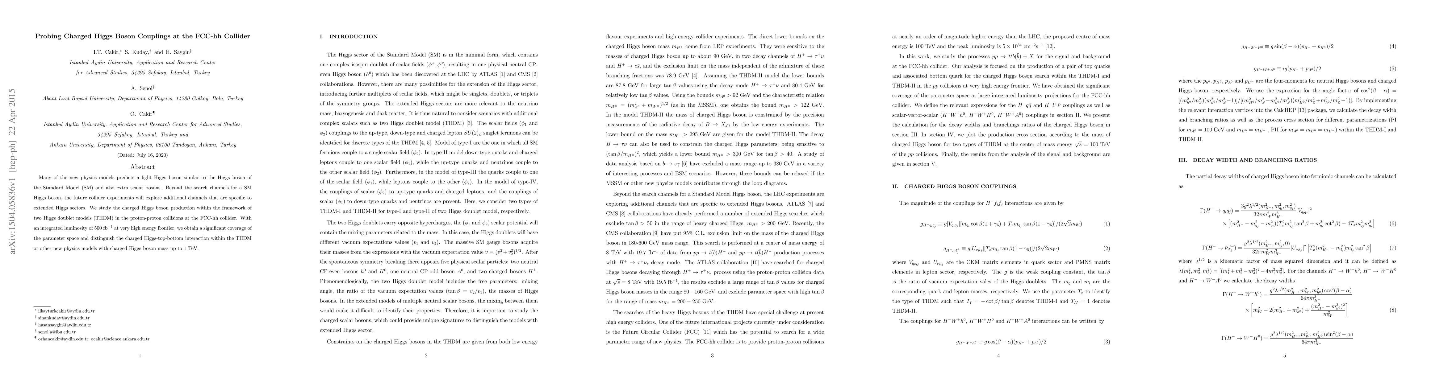 This paper investigates the potential of the Future Circular Collider (FCC-hh) to probe charged Higgs boson couplings within two Higgs doublet models (THDM), focusing on the charged Higgs-top-bottom interaction. The study aims to explore significant regions of the parameter space with an integrated luminosity of 500 fb$^{-1}$ and a charged Higgs boson mass up to 1 TeV.