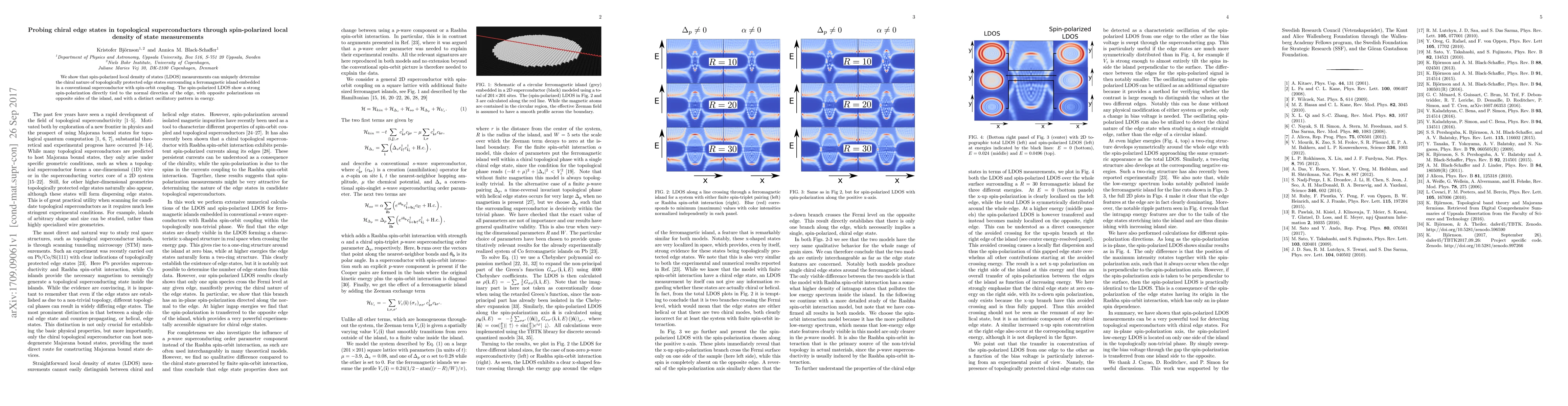 We show that spin-polarized local density of states (LDOS) measurements can uniquely determine the chiral nature of topologically protected edge states surrounding a ferromagnetic island embedded in a conventional superconductor with spin-orbit coupling. The spin-polarized LDOS show a strong spin-polarization directly tied to the normal direction of the edge, with opposite polarizations on opposite sides of the island, and with a distinct oscillatory pattern in energy.