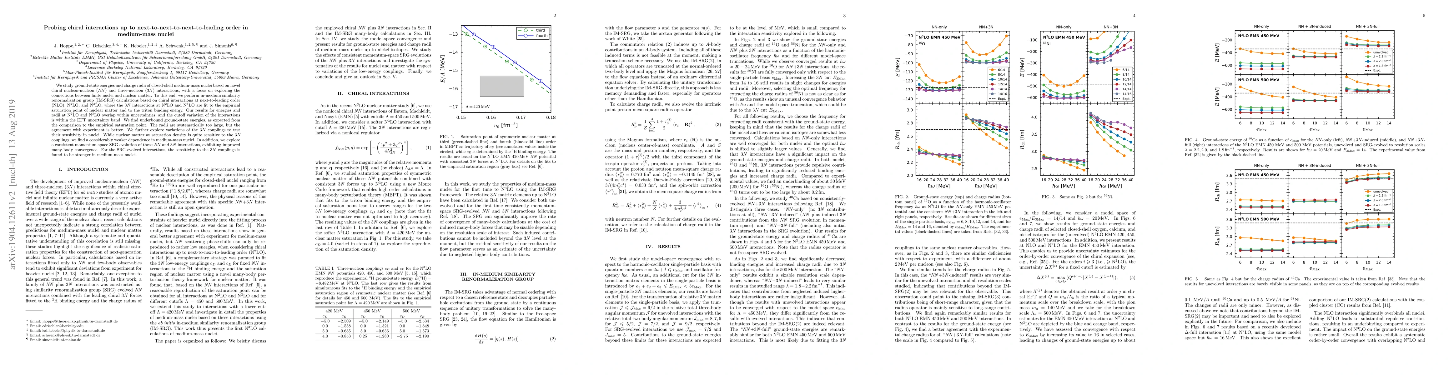 This paper investigates the ground-state energies and charge radii of medium-mass nuclei using novel chiral nucleon-nucleon and three-nucleon interactions at next-to-next-to-next-to-leading order. The study finds that while the interactions show improved convergence, the calculated radii are systematically larger than experimental values, though energies remain underbound.