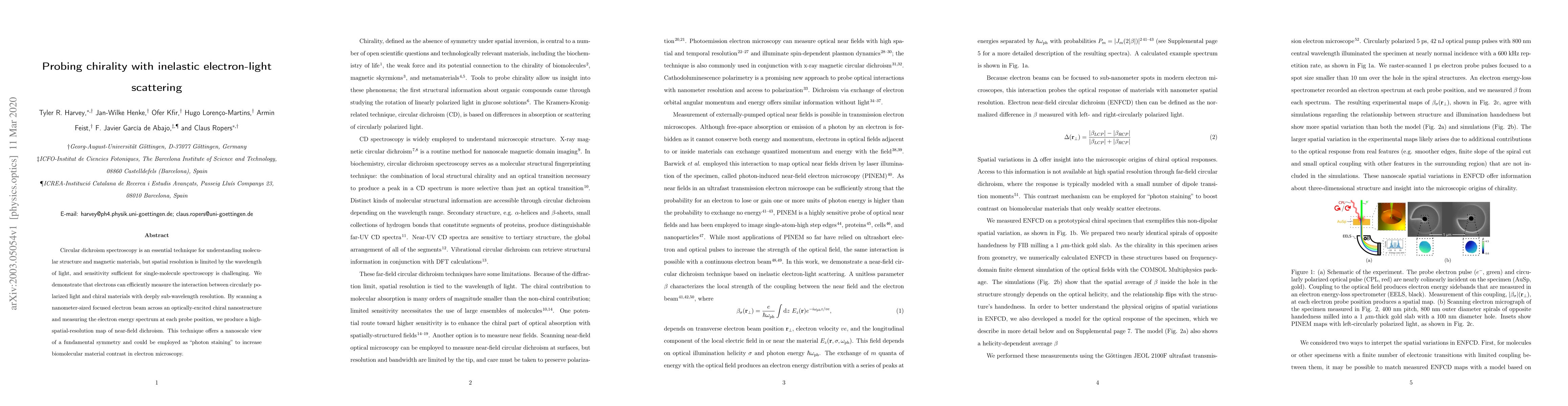 This research introduces a novel method using electrons to achieve deeply sub-wavelength resolution in probing chirality of materials, overcoming limitations of traditional circular dichroism spectroscopy. The technique, called 'photon staining', maps near-field dichroism, potentially enhancing contrast in electron microscopy for biomolecular materials.