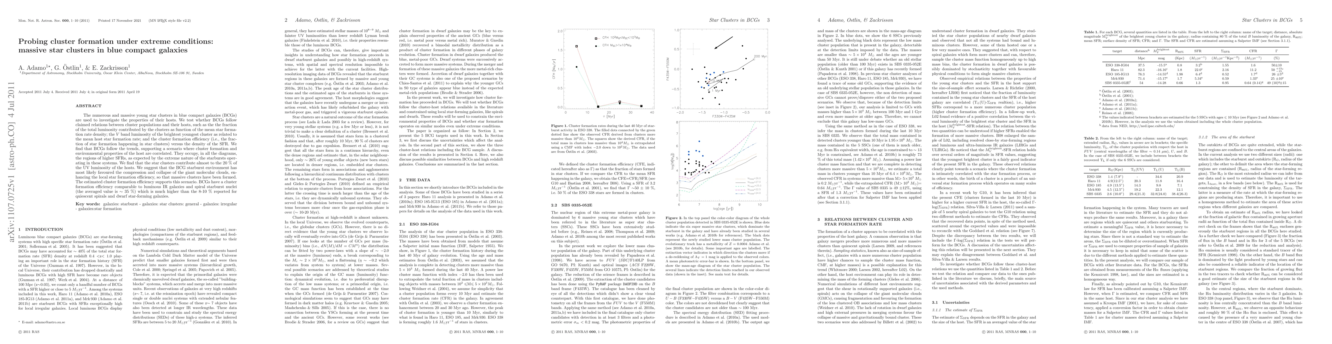 The numerous and massive young star clusters in blue compact galaxies (BCGs) are used to investigate the properties of their hosts. We test whether BCGs follow claimed relations between cluster populations and their hosts, such as the the fraction of the total luminosity contributed by the clusters as function of the mean star formation rate density; the $V$ band luminosity of the brightest youngest cluster as related to the mean host star formation rate; and the cluster formation efficiency (i.e., the fraction of star formation happening in star clusters) versus the density of the SFR. We find that BCGs follow the trends, supporting a scenario where cluster formation and environmental properties of the host are correlated. They occupy, in all the diagrams, the regions of higher SFRs, as expected by the extreme nature of the starbursts operating in these systems. We find that the star clusters contribute almost to the 20 % of the UV luminosity of the hosts. We suggest that the BCG starburst environment has most likely favoured the compression and collapse of the giant molecular clouds, enhancing the local star formation efficiency, so that massive clusters have been formed. The estimated cluster formation efficiency supports this scenario. BCGs have a cluster formation efficiency comparable to luminous IR galaxies and spiral starburst nuclei (the averaged value is about 35 %) which is much higher than the 8 - 10 % reported for quiescent spirals and dwarf star-forming galaxies.