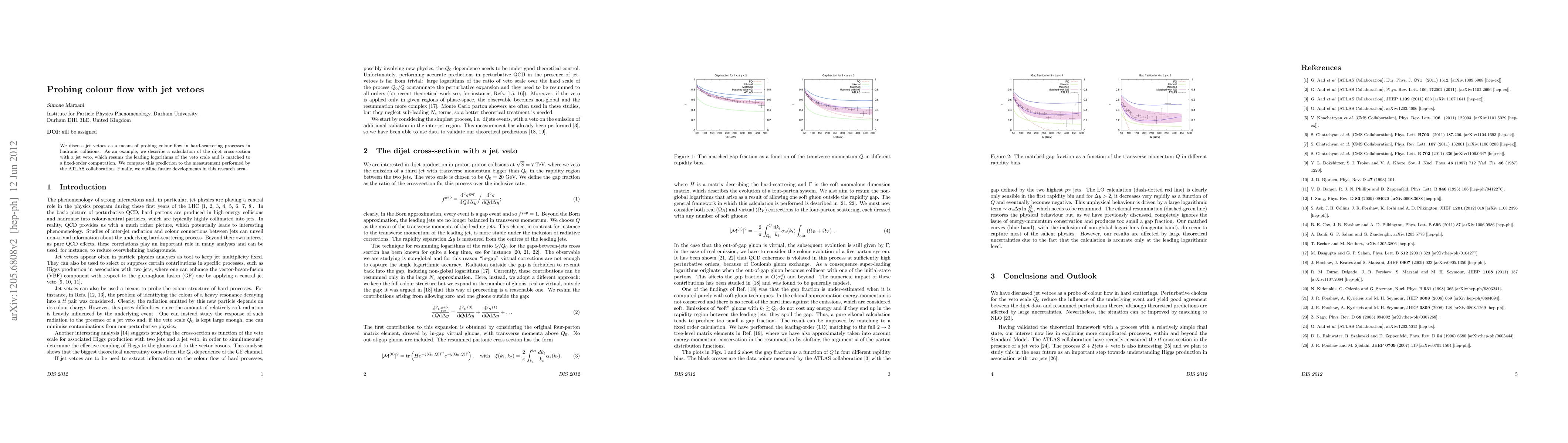 This paper explores jet vetoes to investigate colour flow in hadronic collisions, presenting a calculation of the dijet cross-section with resummed leading logarithms and fixed-order matching, and comparing its results to ATLAS measurements, while also discussing future research directions.