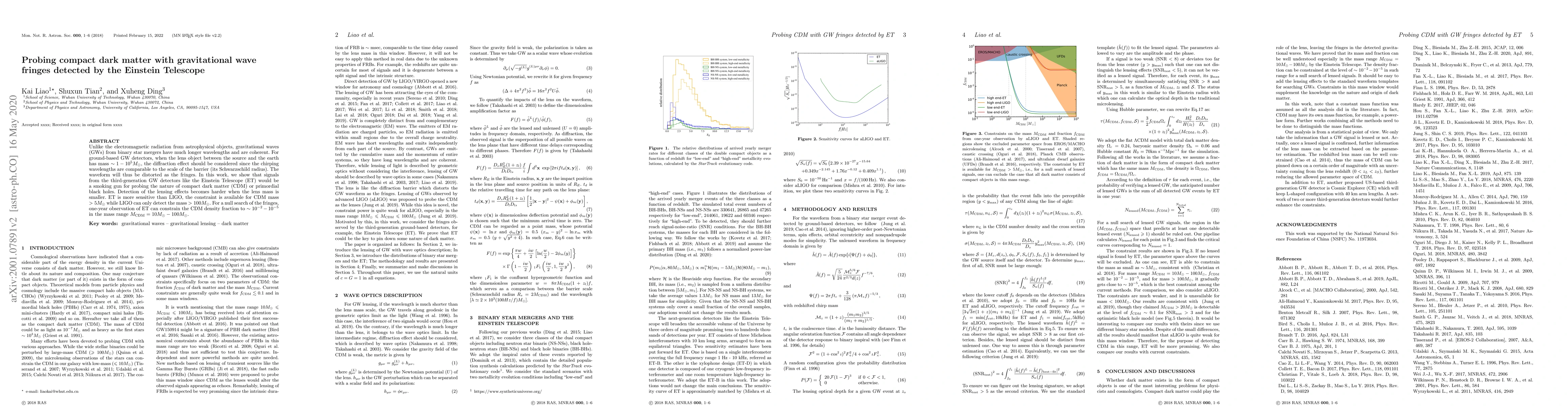 Unlike the electromagnetic radiation from astrophysical objects, gravitational waves (GWs) from binary star mergers have much longer wavelengths and are coherent. For ground-based GW detectors, when the lens object between the source and the earth has mass $\sim 1-10^5M_\odot$, the diffraction effect should be considered since the chirping wavelengths are comparable to the scale of the barrier (its Schwarzschild radius). The waveform will thus be distorted as the fringes. In this work, we show that signals from the third-generation GW detectors like the Einstein Telescope (ET) would be a smoking gun for probing the nature of compact dark matter (CDM) or primordial black holes. Detection of the lensing effects becomes harder when the lens mass is smaller. ET is more sensitive than LIGO, the constraint is available for CDM mass $>5M_\odot$ while LIGO can only detect the mass $>100M_\odot$. For a null search of the fringes, one-year observation of ET can constrain the CDM density fraction to $\sim10^{-2}-10^{-5}$ in the mass range $M_{\rm{CDM}}=10M_\odot-100M_\odot$.