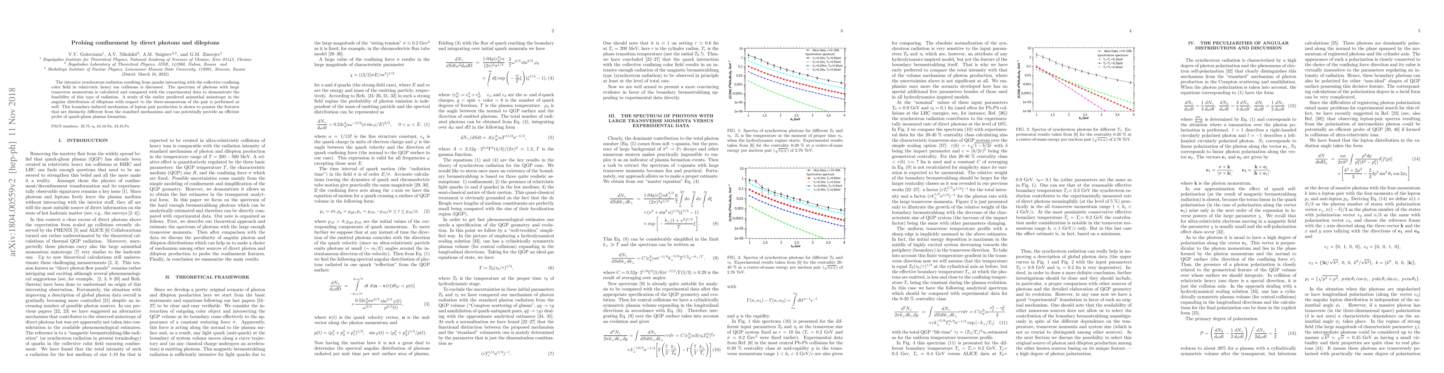 The intensive synchrotron radiation resulting from quarks interacting with the collective confining color field in relativistic heavy ion collisions is discussed. The spectrum of photons with large transverse momentum is calculated and compared with the experimental data to demonstrate the feasibility of this type of radiation. A study of the earlier predicted azimuthal anisotropy in the angular distribution of dileptons with respect to the three-momentum of the pair is performed as well. This boundary-induced mechanism of lepton pair production is shown to possess the features that are distinctly different from the standard mechanisms and can potentially provide an efficient probe of quark-gluon plasma formation.