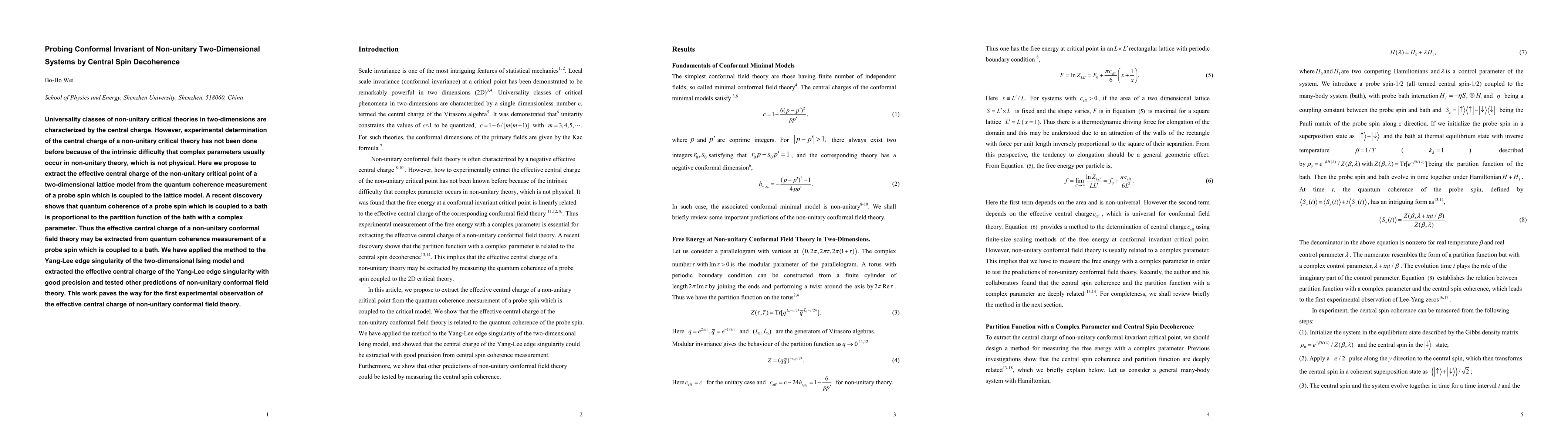 This research proposes a novel method to determine the central charge of non-unitary conformal invariant critical points in two-dimensional systems using quantum decoherence of a probe spin coupled to the system. It successfully extracts the central charge for the Yang-Lee edge singularity in the two-dimensional Ising model, marking the first experimental observation of such a central charge in non-unitary conformal field theories.
