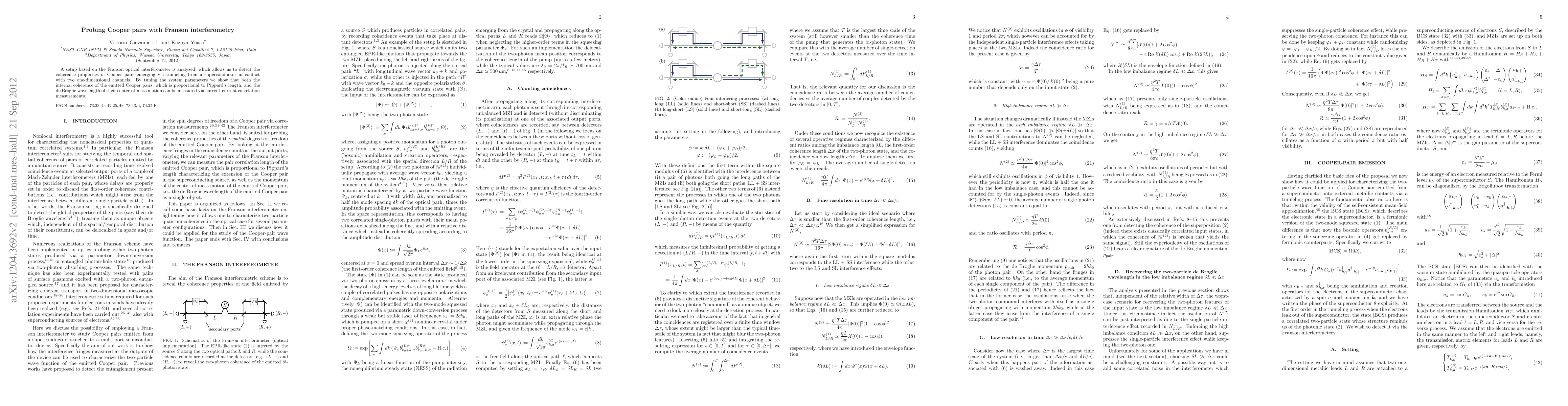 The paper presents a detailed analysis of using Franson interferometry to probe Cooper pairs, providing expressions for coincidence rates and single-electron detection rates, which can be applied to both optical and electronic scenarios with necessary parameter substitutions.
