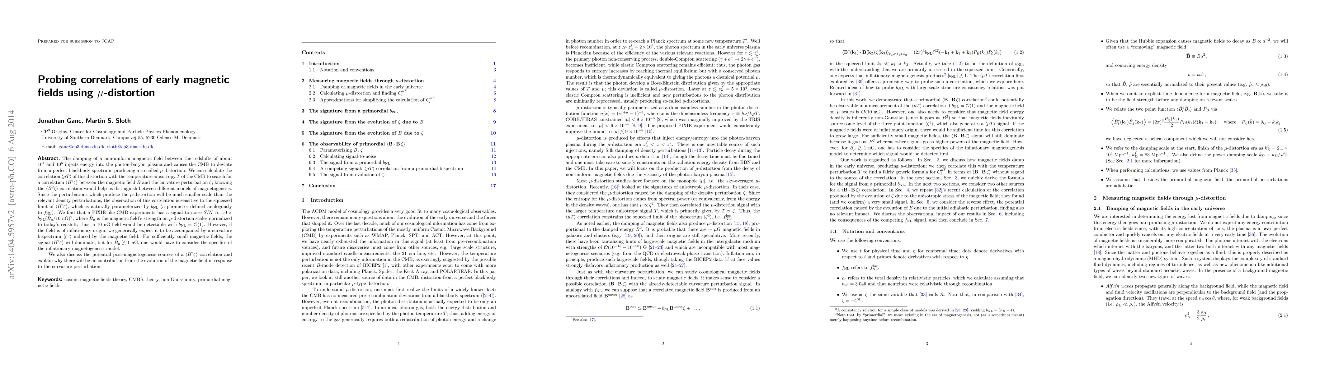 The damping of a non-uniform magnetic field between the redshifts of about $10^4$ and $10^6$ injects energy into the photon-baryon plasma and causes the CMB to deviate from a perfect blackbody spectrum, producing a so-called $\mu$-distortion. We can calculate the correlation $\langle\mu T\rangle$ of this distortion with the temperature anisotropy $T$ of the CMB to search for a correlation $\langle B^2\zeta\rangle$ between the magnetic field $B$ and the curvature perturbation $\zeta$; knowing the $\langle B^2\zeta\rangle$ correlation would help us distinguish between different models of magnetogenesis. Since the perturbations which produce the $\mu$-distortion will be much smaller scale than the relevant density perturbations, the observation of this correlation is sensitive to the squeezed limit of $\langle B^2\zeta\rangle$, which is naturally parameterized by $b_{\text{NL}}$ (a parameter defined analogously to $f_{\text{NL}}$). We find that a PIXIE-like CMB experiments has a signal to noise $S/N\approx 1.0 \times b_{\text{NL}} (\tilde B_\mu/10\text{ nG})^2$, where $\tilde B_\mu$ is the magnetic field's strength on $\mu$-distortion scales normalized to today's redshift; thus, a 10 nG field would be detectable with $b_{\text{NL}}=\mathcal{O}(1)$. However, if the field is of inflationary origin, we generically expect it to be accompanied by a curvature bispectrum $\langle\zeta^3\rangle$ induced by the magnetic field. For sufficiently small magnetic fields, the signal $\langle B^2 \zeta\rangle$ will dominate, but for $\tilde B_\mu\gtrsim 1$ nG, one would have to consider the specifics of the inflationary magnetogenesis model. We also discuss the potential post-magnetogenesis sources of a $\langle B^2\zeta\rangle$ correlation and explain why there will be no contribution from the evolution of the magnetic field in response to the curvature perturbation.
