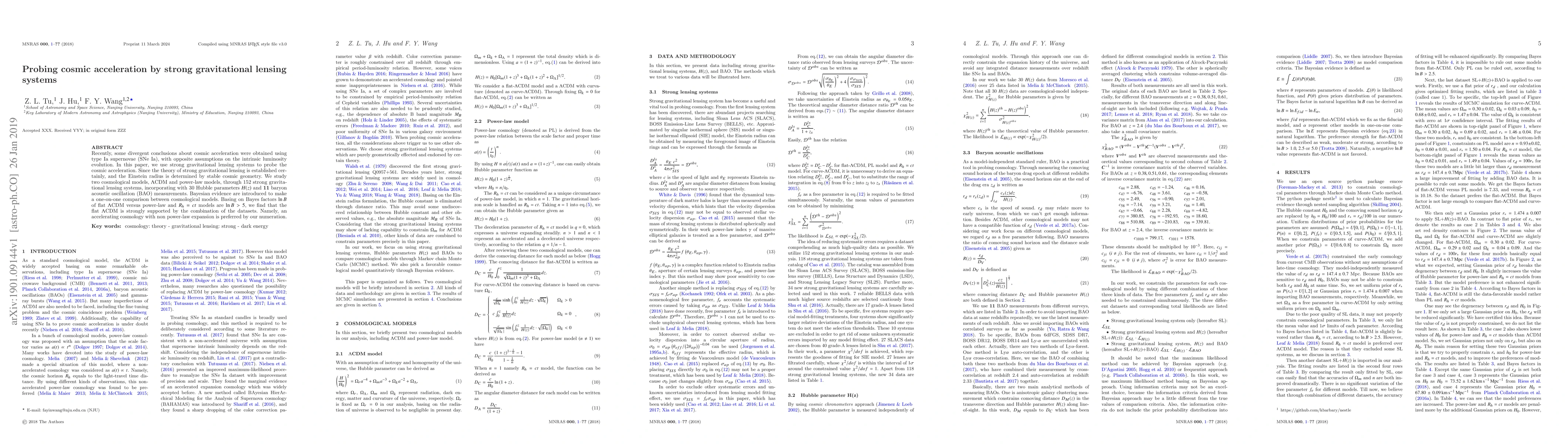 This paper investigates cosmic acceleration using strong gravitational lensing systems, comparing the $\Lambda$CDM model with power-law models. The analysis supports the $\Lambda$CDM model, indicating an accelerating universe with non-power-law expansion, based on Bayesian evidence and high Bayes factors.