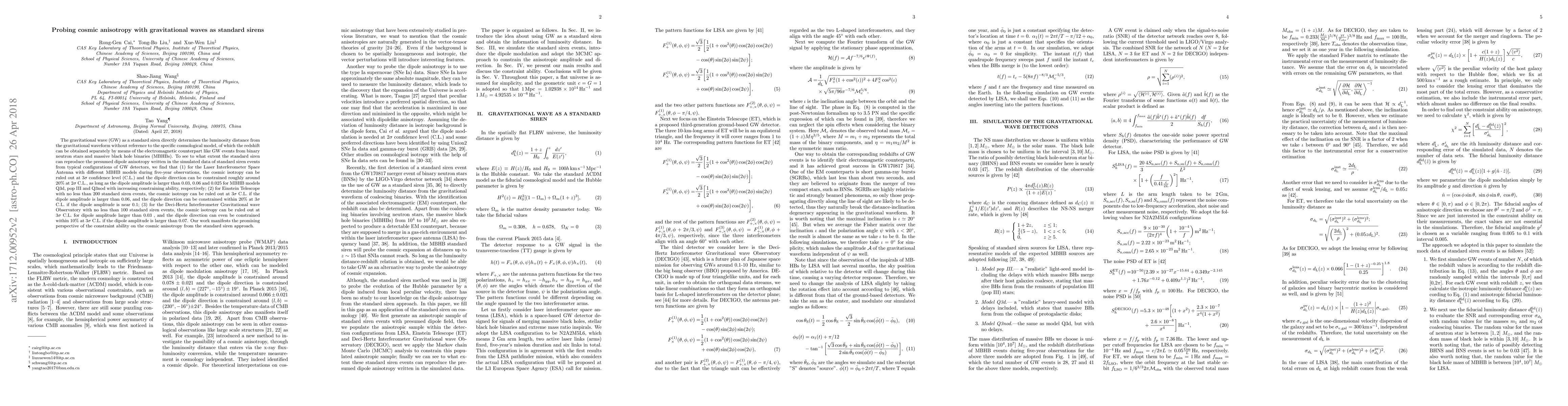 Gravitational wave detectors can rule out cosmic anisotropy at $3 au$ confidence level with sufficient data, offering a promising tool for constraining the universe's large-scale structure.