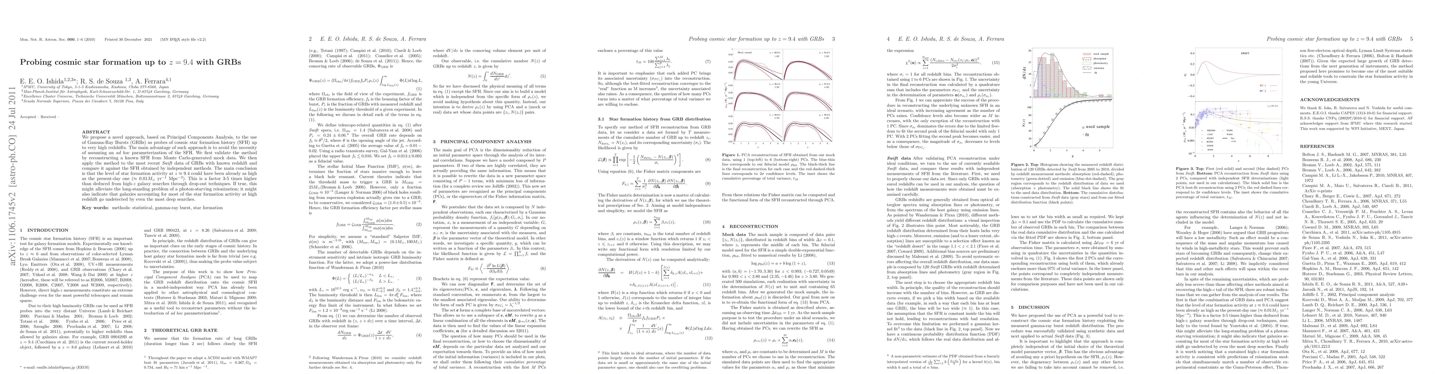 We propose a novel approach, based on Principal Components Analysis, to the use of Gamma-Ray Bursts (GRBs) as probes of cosmic star formation history (SFH) up to very high redshifts. The main advantage of such approach is to avoid the necessity of assuming an \textit{ad hoc} parameterization of the SFH. We first validate the method by reconstructing a known SFH from Monte Carlo-generated mock data. We then apply the method to the most recent \textit{Swift} data of GRBs with known redshift and compare it against the SFH obtained by independent methods. The main conclusion is that the level of star formation activity at $z \approx 9.4$ could have been already as high as the present-day one ($\approx 0.01 M_\odot$ yr$^{-1}$ Mpc$^{-3}$). This is a factor 3-5 times higher than deduced from high-$z$ galaxy searches through drop-out techniques. If true, this might alleviate the long-standing problem of a photon-starving reionization; it might also indicate that galaxies accounting for most of the star formation activity at high redshift go undetected by even the most deep searches.