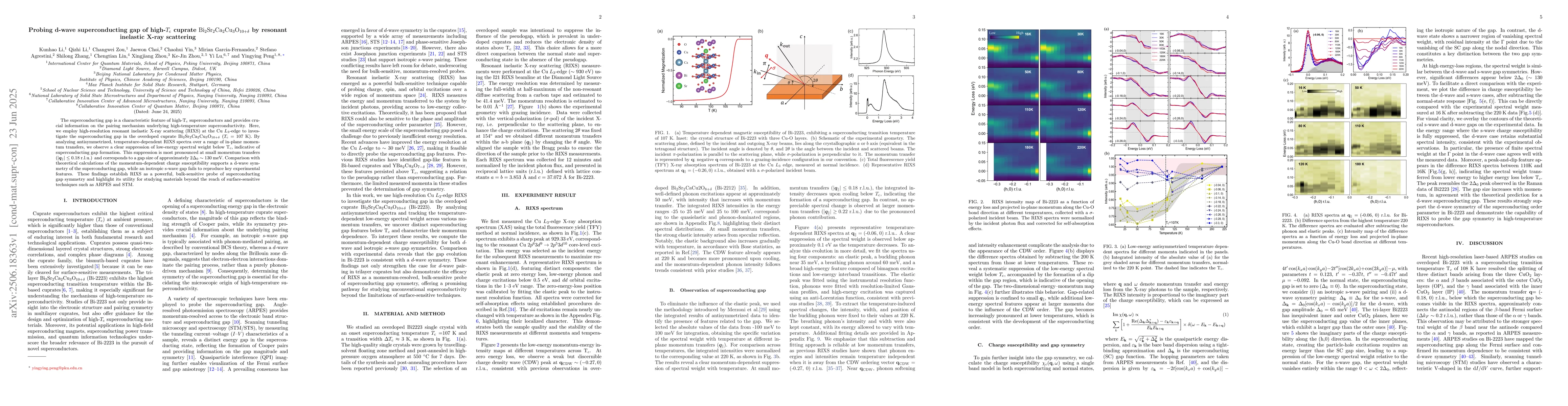 The superconducting gap is a characteristic feature of high-T$_c$ superconductors and provides crucial information on the pairing mechanism underlying high-temperature superconductivity. Here, we employ high-resolution resonant inelastic X-ray scattering (RIXS) at the Cu $L_3$-edge to investigate the superconducting gap in the overdoped cuprate $\mathrm{Bi}_2\mathrm{Sr}_2\mathrm{Ca}_2\mathrm{Cu}_3\mathrm{O}_{10+\delta}$ ($T_\mathrm{c}$ = 107 K). By analyzing antisymmetrized, temperature-dependent RIXS spectra over a range of in-plane momentum transfers, we observe a clear suppression of low-energy spectral weight below T$_c$, indicative of superconducting gap formation. This suppression is most pronounced at small momentum transfers ($|\boldsymbol{q}_\parallel| \leq 0.18$ r.l.u.) and corresponds to a gap size of approximately 2$\Delta_0 \sim$ 130 meV. Comparison with theoretical calculations of the momentum-dependent charge susceptibility supports a d-wave symmetry of the superconducting gap, while an isotropic s-wave gap fails to reproduce key experimental features. These findings establish RIXS as a powerful, bulk-sensitive probe of superconducting gap symmetry and highlight its utility for studying materials beyond the reach of surface-sensitive techniques such as ARPES and STM.