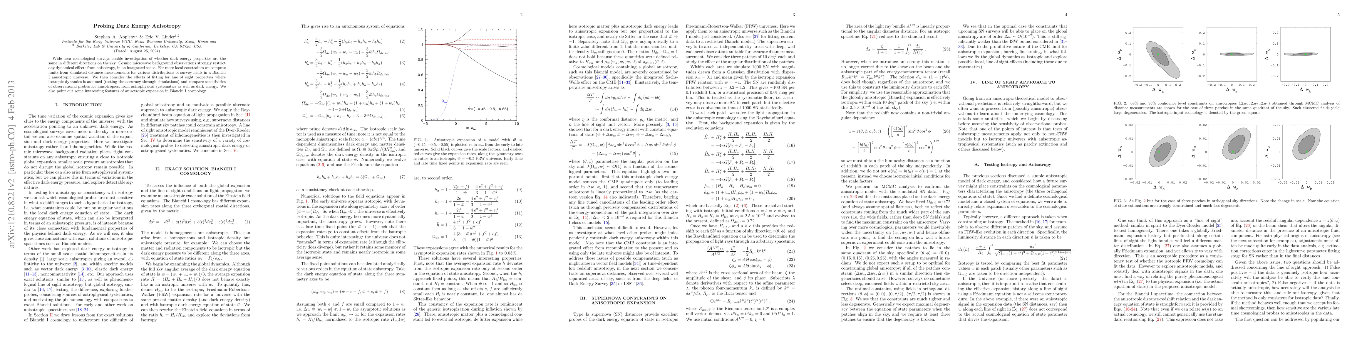 Wide area cosmological surveys enable investigation of whether dark energy properties are the same in different directions on the sky. Cosmic microwave background observations strongly restrict any dynamical effects from anisotropy, in an integrated sense. For more local constraints we compute limits from simulated distance measurements for various distributions of survey fields in a Bianchi I anisotropic universe. We then consider the effects of fitting for line of sight properties where isotropic dynamics is assumed (testing the accuracy through simulations) and compare sensitivities of observational probes for anisotropies, from astrophysical systematics as well as dark energy. We also point out some interesting features of anisotropic expansion in Bianchi I cosmology.