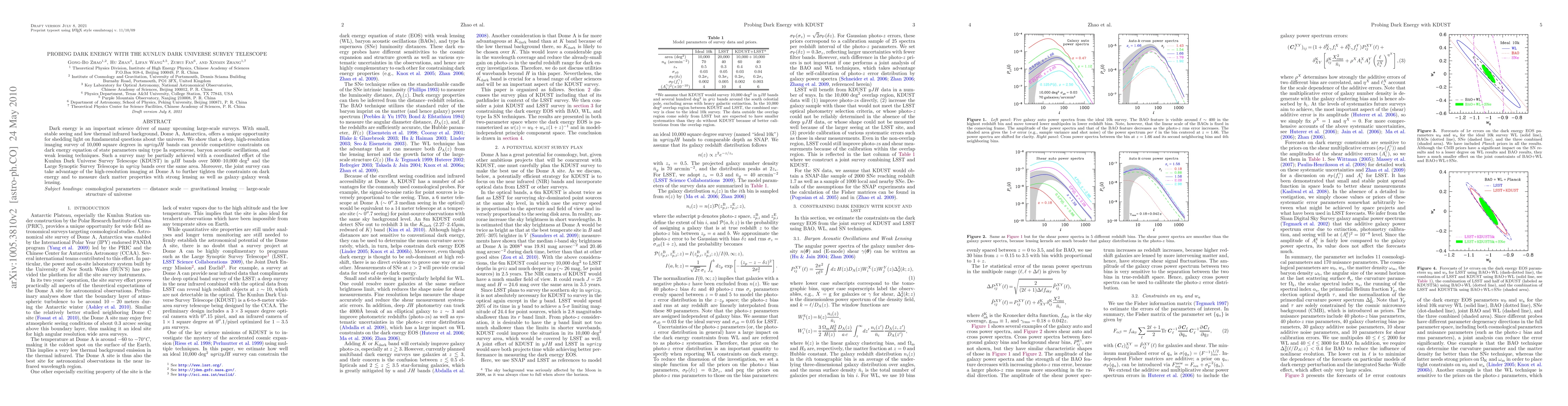 This paper explores how the Kunlun Dark Universe Survey Telescope (KDUST) in Dome A, Antarctica, can contribute to understanding dark energy through a deep imaging survey in multiple bands. It suggests that combining KDUST with the Large Synoptic Survey Telescope can provide strong constraints on dark energy parameters and measure dark matter properties using various observational techniques.