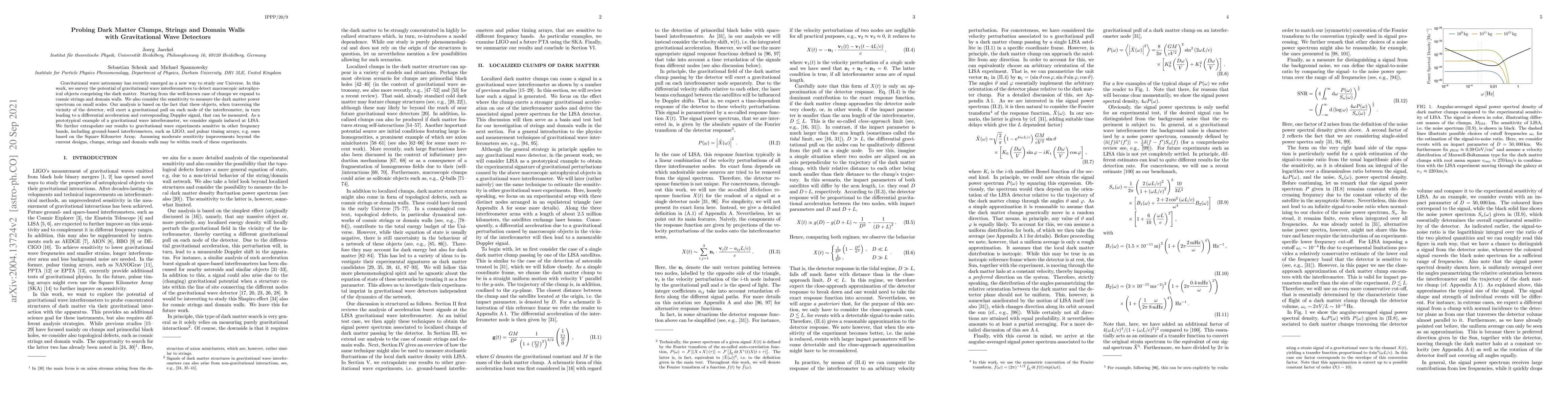This paper explores the potential of gravitational wave detectors to identify dark matter clumps, cosmic strings, and domain walls by analyzing the differential accelerations they induce in interferometers like LISA, LIGO, and pulsar timing arrays. It suggests that with improved sensitivity, these detectors could detect the dark matter power spectrum on small scales.