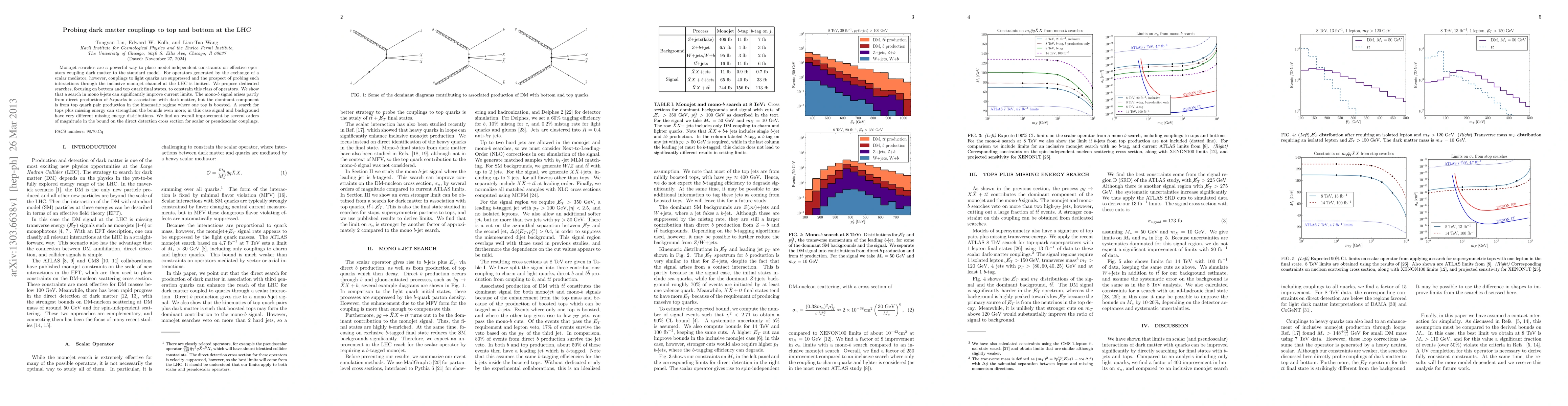 Monojet searches are a powerful way to place model-independent constraints on effective operators coupling dark matter to the standard model. For operators generated by the exchange of a scalar mediator, however, couplings to light quarks are suppressed and the prospect of probing such interactions through the inclusive monojet channel at the LHC is limited. We propose dedicated searches, focusing on bottom and top quark final states, to constrain this class of operators. We show that a search in mono b-jets can significantly improve current limits. The mono-b signal arises partly from direct production of b-quarks in association with dark matter, but the dominant component is from top quark pair production in the kinematic regime where one top is boosted. A search for tops plus missing energy can strengthen the bounds even more; in this case signal and background have very different missing energy distributions. We find an overall improvement by several orders of magnitude in the bound on the direct detection cross section for scalar or pseudoscalar couplings.